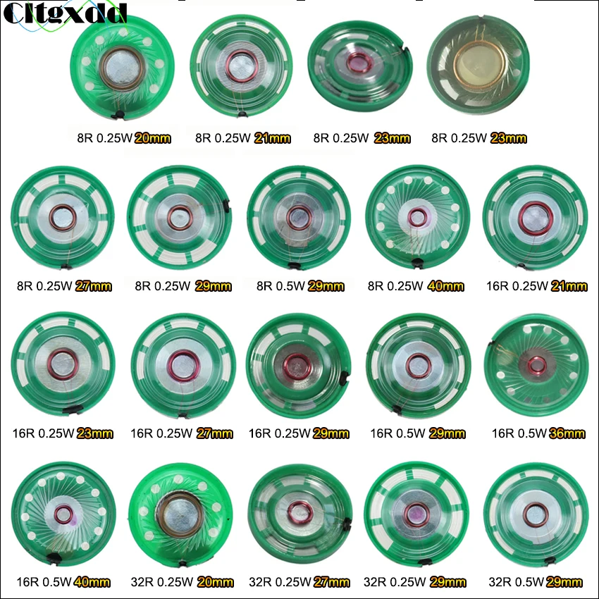 Cltgxdd 2 uds nuevo altavoz ultrafino timbre bocina de juguete-cuerno de coche 16 ohmios 0,5 W 0,25 W 16R altavoz 21 23 27 29 36 40 mm de diámetro