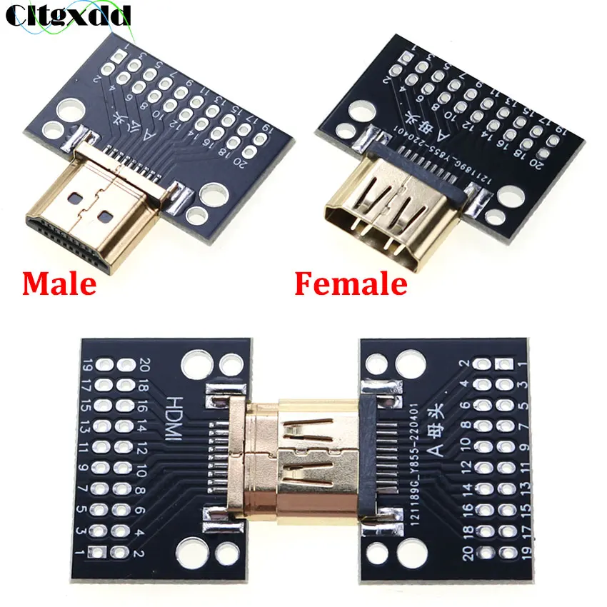 Comprar Cltgxdd 1 Uds Compatible-placa de prueba HDMI macho y hembra conector macho de 19 pines 19P con placa de prueba PCB tipo soldadura A