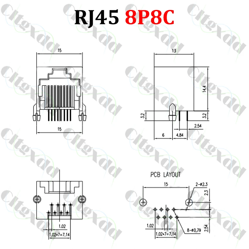 Comprar Cltgxdd 10 Uds RJ11 RJ12 RJ45 enchufe de teléfono Pin curvo 4P4C 6P6C 8P8C conector hembra PCB