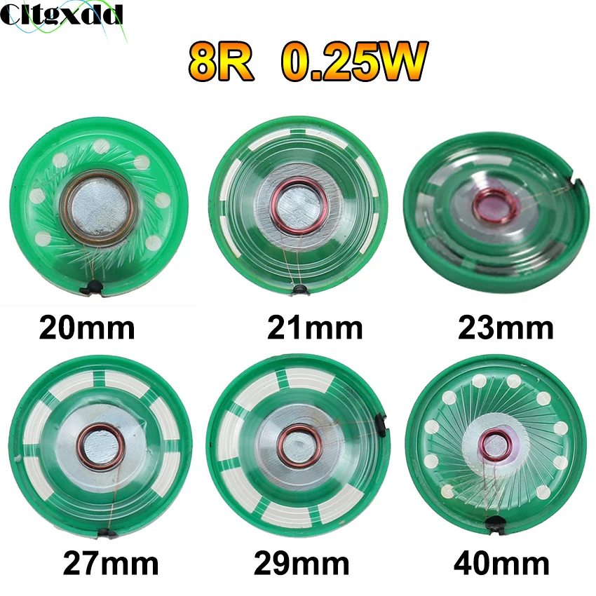 Comprar Cltgxdd-altavoz ultradelgado para coche, bocina de juguete, 8 ohmios, 0,5 W, 0,25 W, 8R, 20, 21, 23, 27, 29, 40 mm de diámetro, 2 uds.