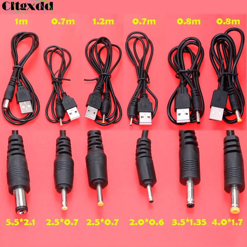 Comprar Cltgxdd-Cable de alimentación de CC, puerto USB a 2,0x0,6mm, 2,5x0,7mm, 3,5x1,35mm, 1,7mm x 4,0, 5,5x2,1mm, 5V, conector de Cable de alimentación de barril de CC