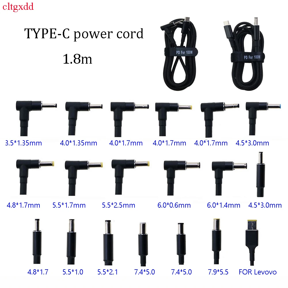 Comprar Cltgxdd-cable de carga para ordenador portátil, conector adaptador de corriente de 100W, PD TYPE-C a DC 5,5x2,1/5,5x2,5/7,4x5,0/4,5x3,0/1 unidad