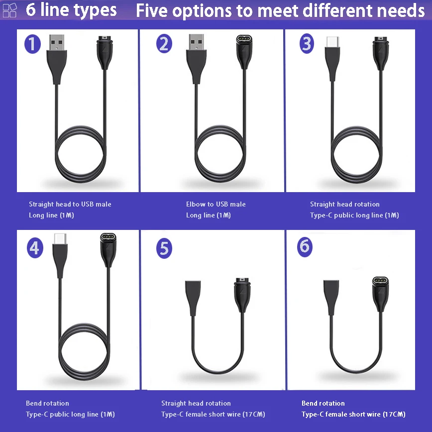 Cltgxdd 1 piezas adecuado para Garmin Jiaming Sports Watch Cable de carga FENIX Series Feinaishi 945/245/45 conectores de carga rápida