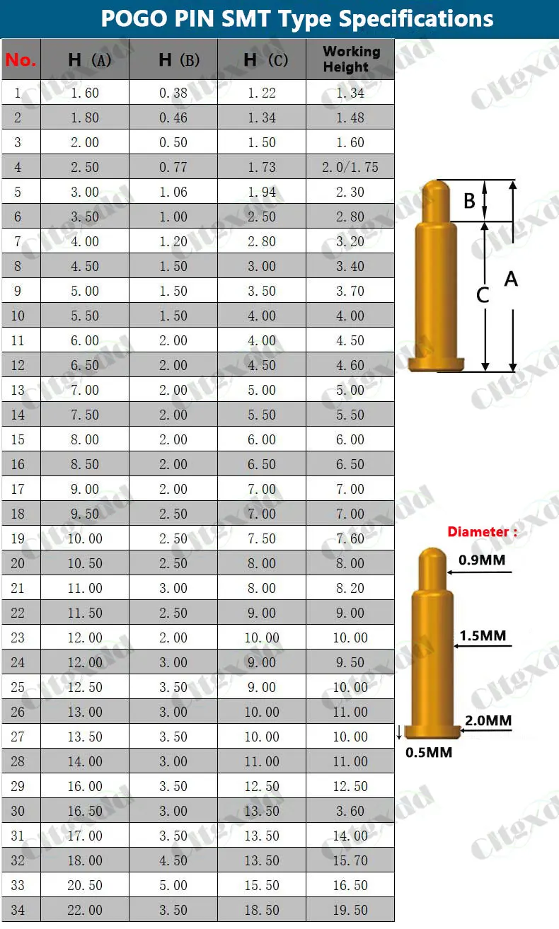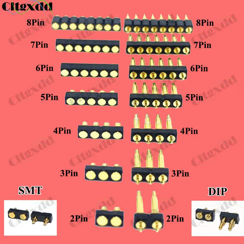 Cltgxdd-conector de clavija SMT DIP Pogo, batería Pogopin con resorte cargado, sonda de prueba de contacto, cabezal de carga de energía, pines 2,54, rejilla, 1 ud.