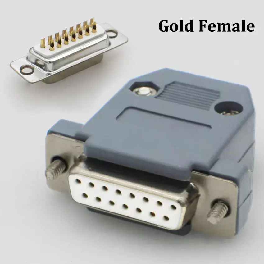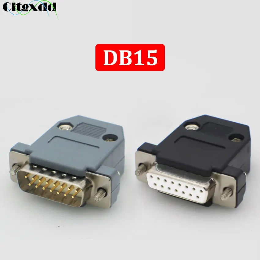 Comprar Cltgxdd conector DB15, adaptador de puerto de enchufe macho y hembra de 15 Pines, 2 filas, carcasa de plástico gris y negro, 1 unidad