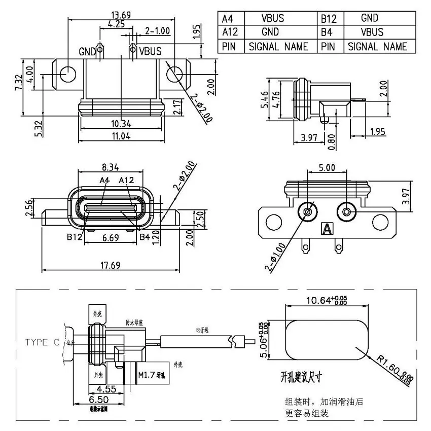 Comprar Cltgxdd-conector hembra con orificio de tornillo para Cable de carga rápida, 1 pieza, IPX8 USB tipo C, 2P, 2 pines, impermeable, 3A, 36V