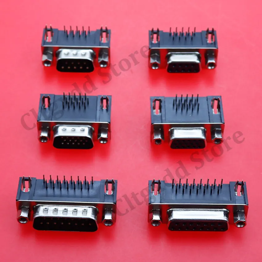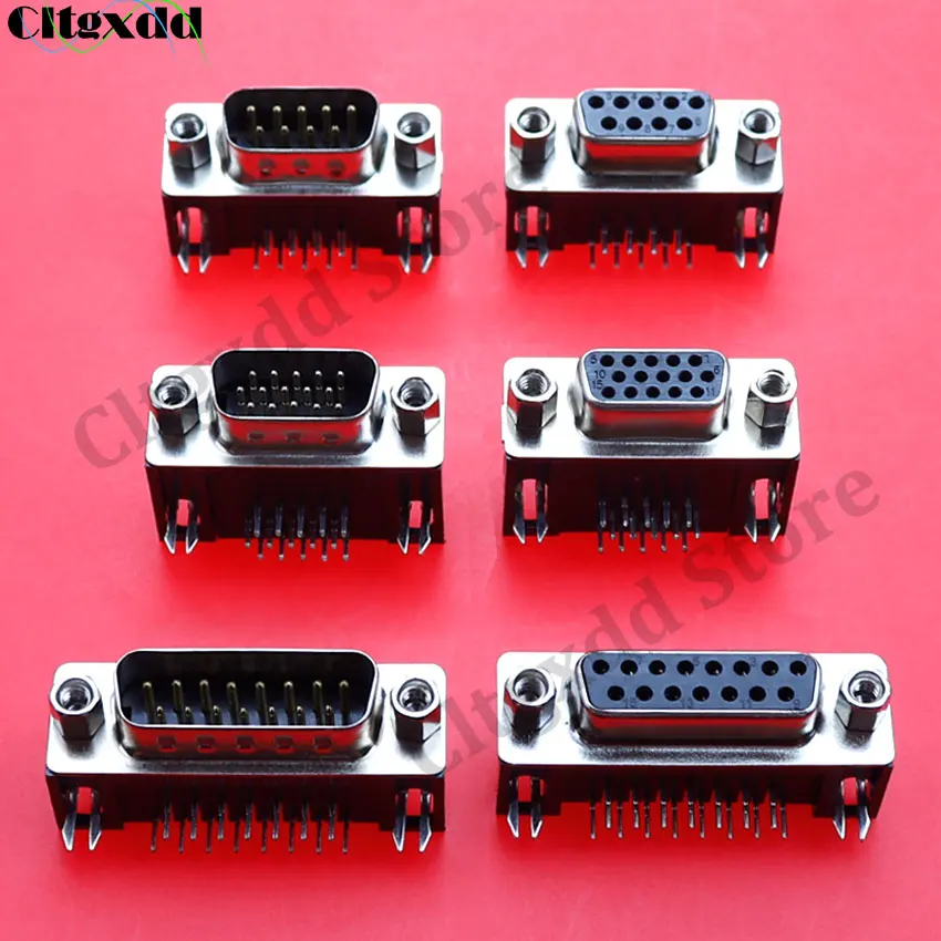 Comprar Cltgxdd-conector macho DB9 DB15, enchufe hembra, montaje PCB, d-sub, 9 pines, 15 Pines, RS232, aguja doblada de 90 grados, DR9, DR15, 2 piezas