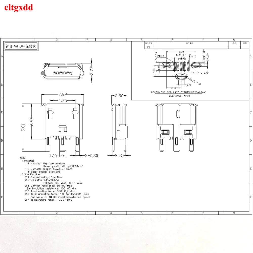 Comprar Cltgxdd-Conector MICRO USB B 2,0, 5 pines, 3 pies, puerto de salida Dharging, Tipo vertical, Smt 6,7 H, 1 pieza