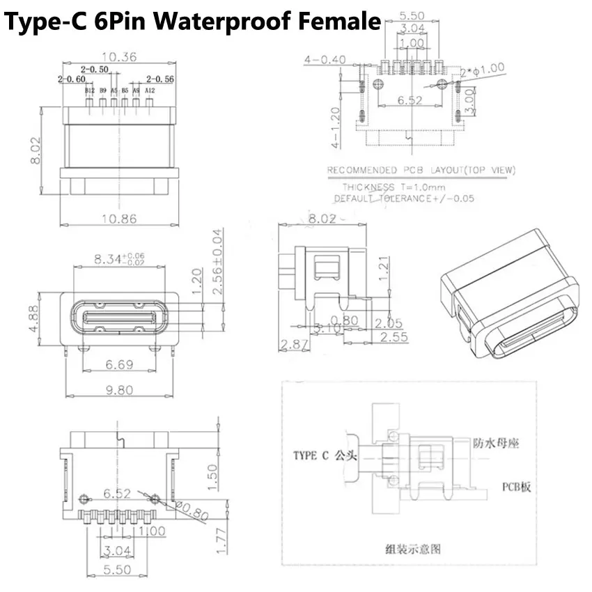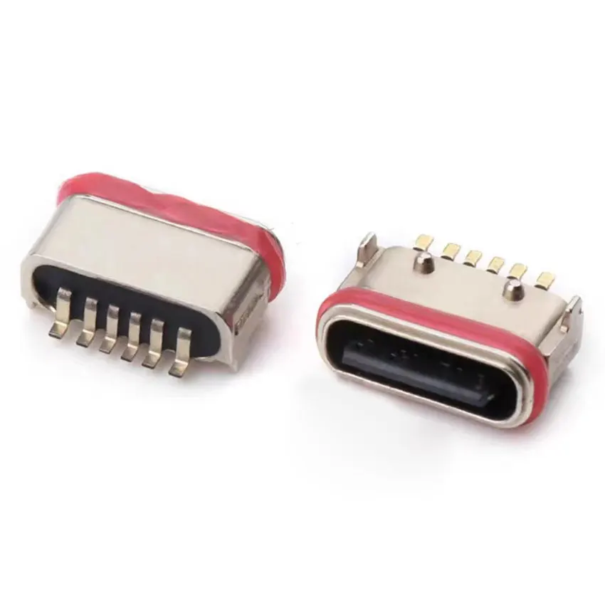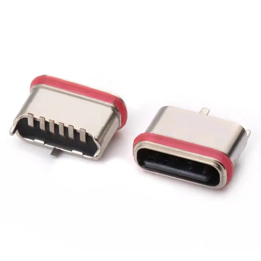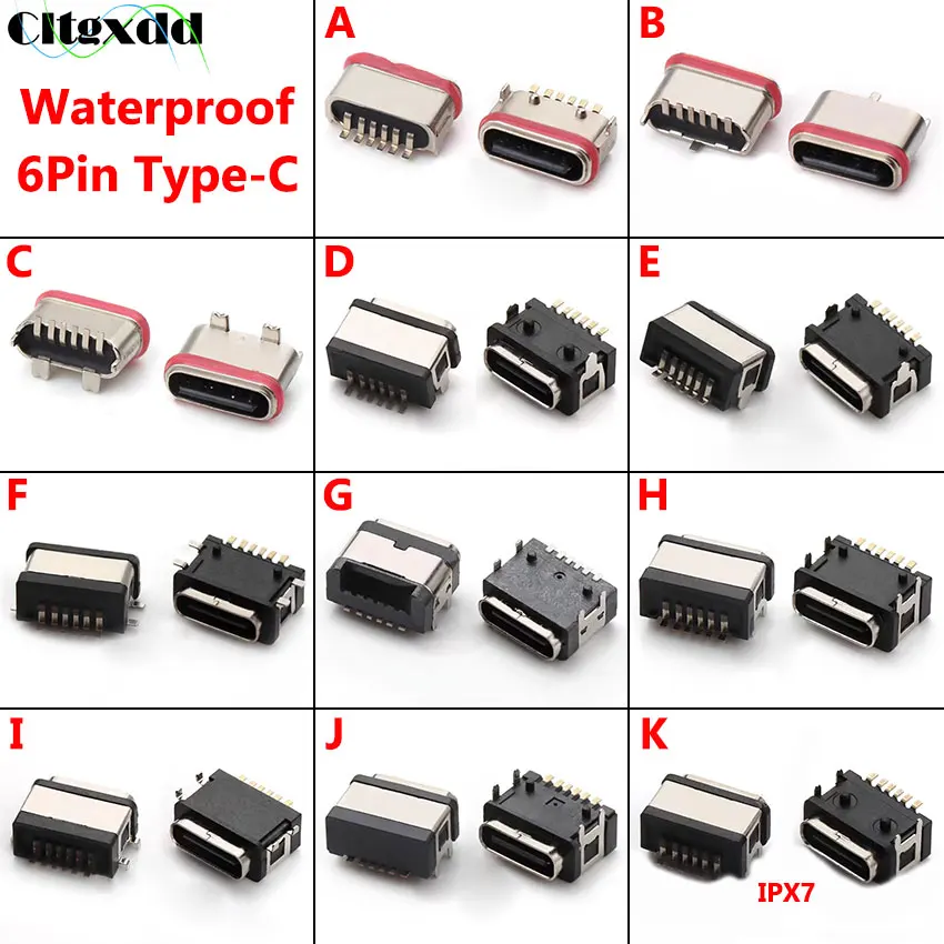 Comprar Cltgxdd-conector de puerto de carga, 10 piezas, USB tipo C, 6 pines, 6P, impermeable, hembra, IPX6, IPX7, placa de hundimiento, SMT, DIP, tipo C