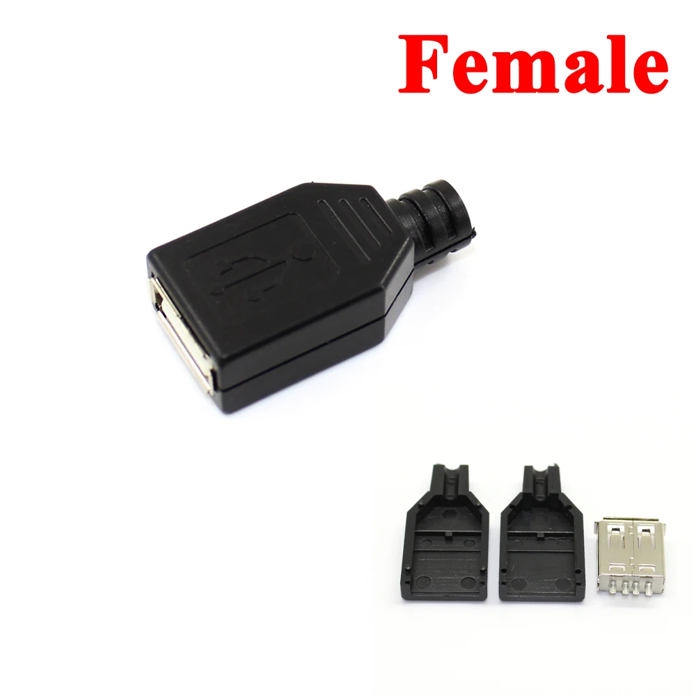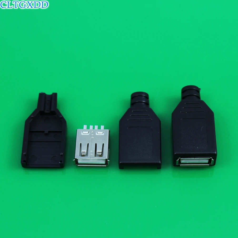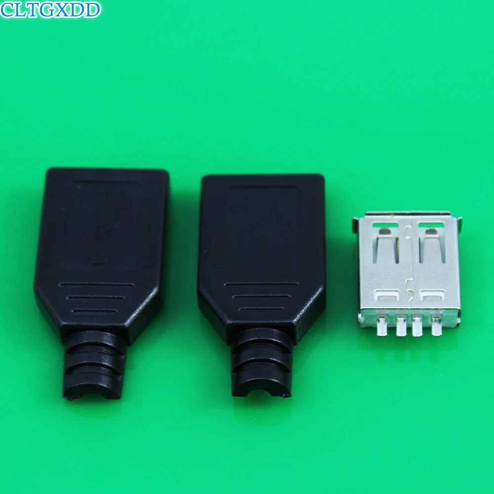 Cltgxdd IMC caliente nuevo tipo A hembra 2,0 USB 4 Pin enchufe conector con cubierta de plástico negro tipo de soldadura conector de bricolaje