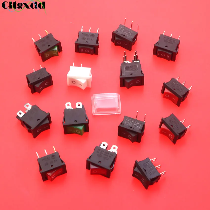 Comprar Cltgxdd-interruptor basculante, 10 piezas, 2 pines, 3 pines, 4 pines, 6 pines, 21x15mm, 6A, 250V/10A, 125V, encendido/apagado, rojo, verde, negro, blanco