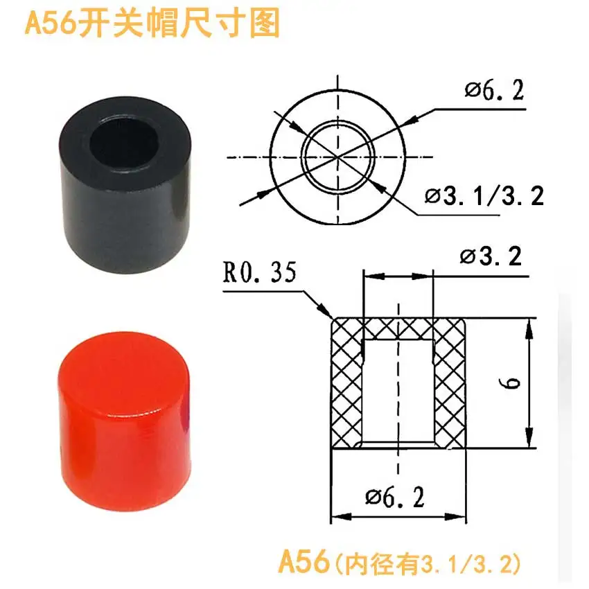 Comprar Cltgxdd-Kits de tapa de plástico G62 para interruptor de botón táctil, cubierta de tapa A56, 6x6mm, verde, negro, blanco, azul, 50 unids/lote