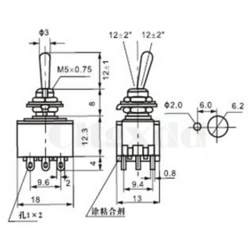 Comprar Cltgxdd-Mini interruptor de palanca rojo, interruptor de 9 pines, 3 posiciones, ON-OFF-ON, CA, 2A, 250V, CA/5A, 125V, MTS-303, 1 ud.