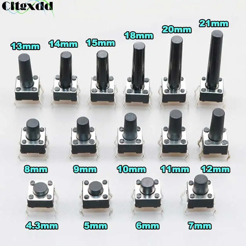 Comprar Cltgxdd-Mini Interruptor táctil momentáneo, Panel de microinterruptor PCB, 4 pines, 6x6x5, 6x6x100, 5, 6, 7, 8, 9 -21MM, 4,3 Uds.