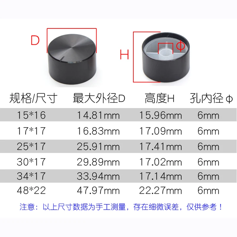 Cltgxdd-perilla de aleación de aluminio, cubierta de potenciómetro, control de amplificador de volumen, interruptor giratorio de 15/17/25/30/34mm, tapa de ajuste, 1 piezas