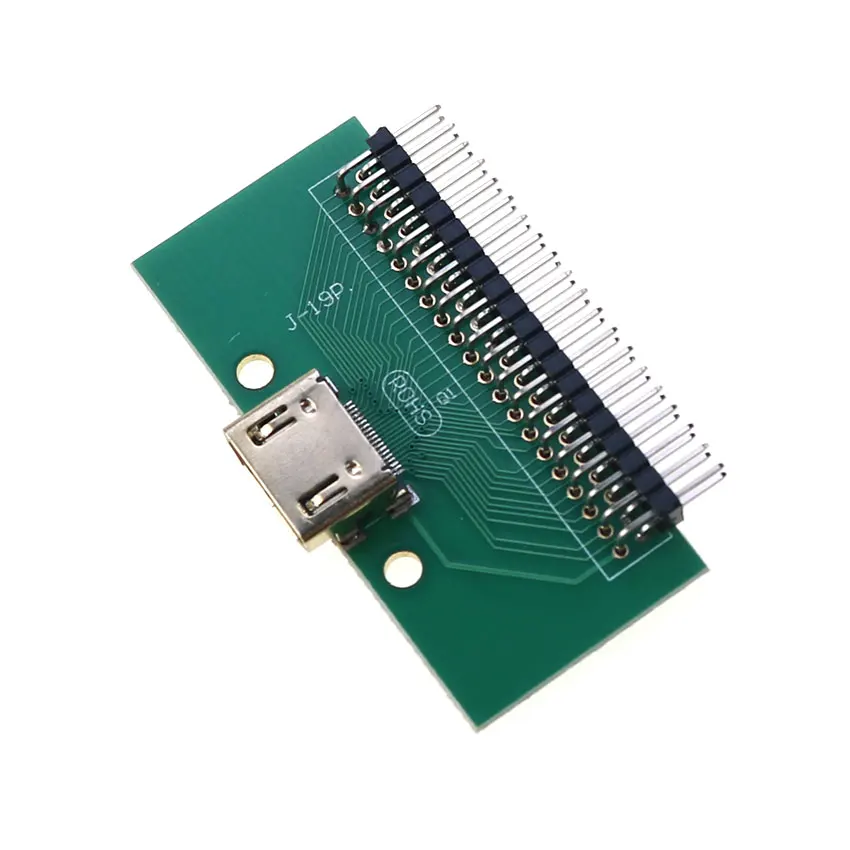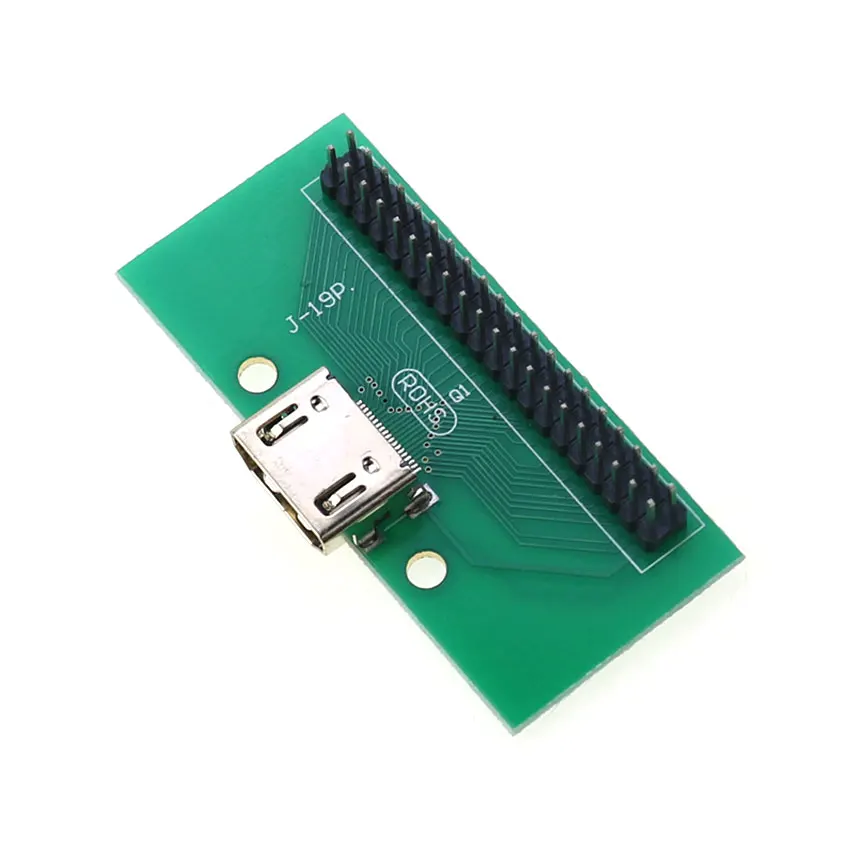 Cltgxdd Placa de prueba PCB de tipo A, adaptador de conector hembra HDMI, 19 pines, paso de 2,54mm, Compatible con HDMI