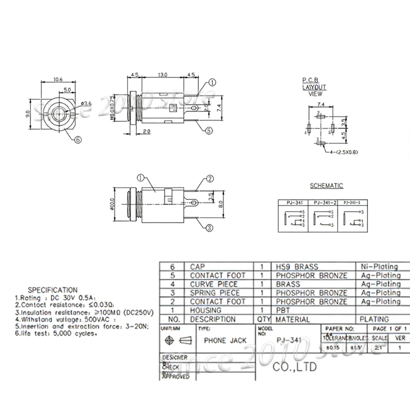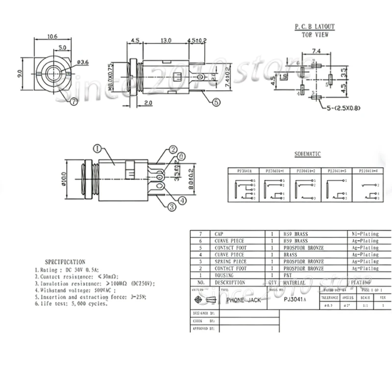 Cltgxdd1-5PC PJ341 toma de auriculares interfaz de audio de 3,5 MM toma vertical 3/4/5 pines PIN PJ-341M con tuerca (juego de dos piezas) auricular