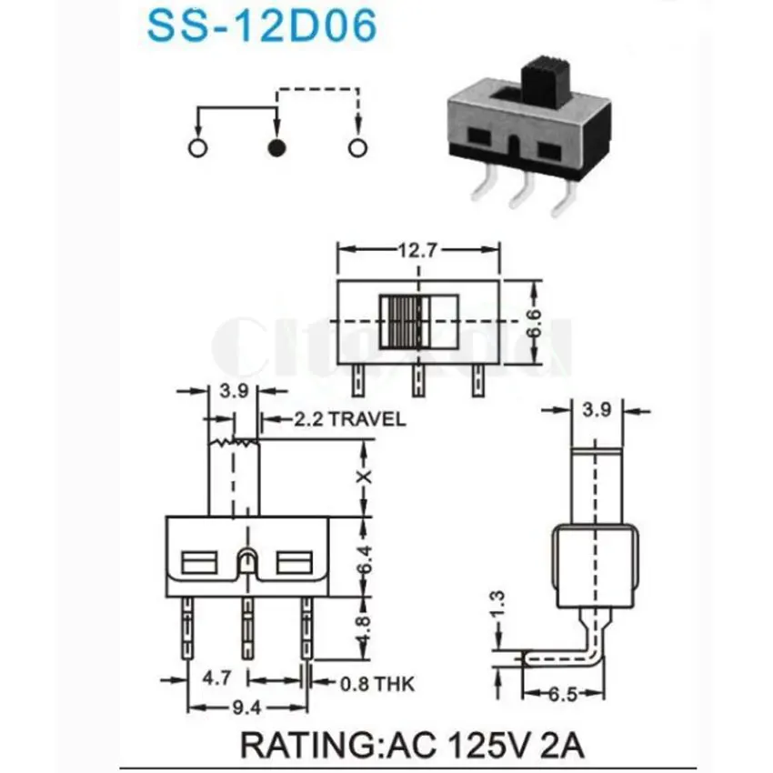 Comprar Cltgxxdd-Interruptor de palanca curva, de 3 pines SS-12D06, mango 1P2T, espaciado de 5mm, 4,7mm, 3A, 250V, 1 pieza