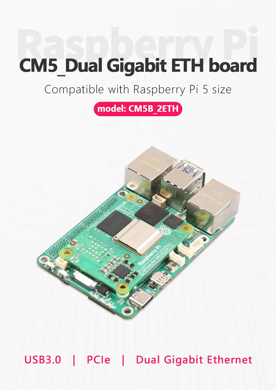 CM5B_2ETH, Raspberry Pi CM5 Placa de expansión Gigabit Ethernet dual, PCIe, USB3.0, sin controlador para OpenWRT, sistema operativo RPi