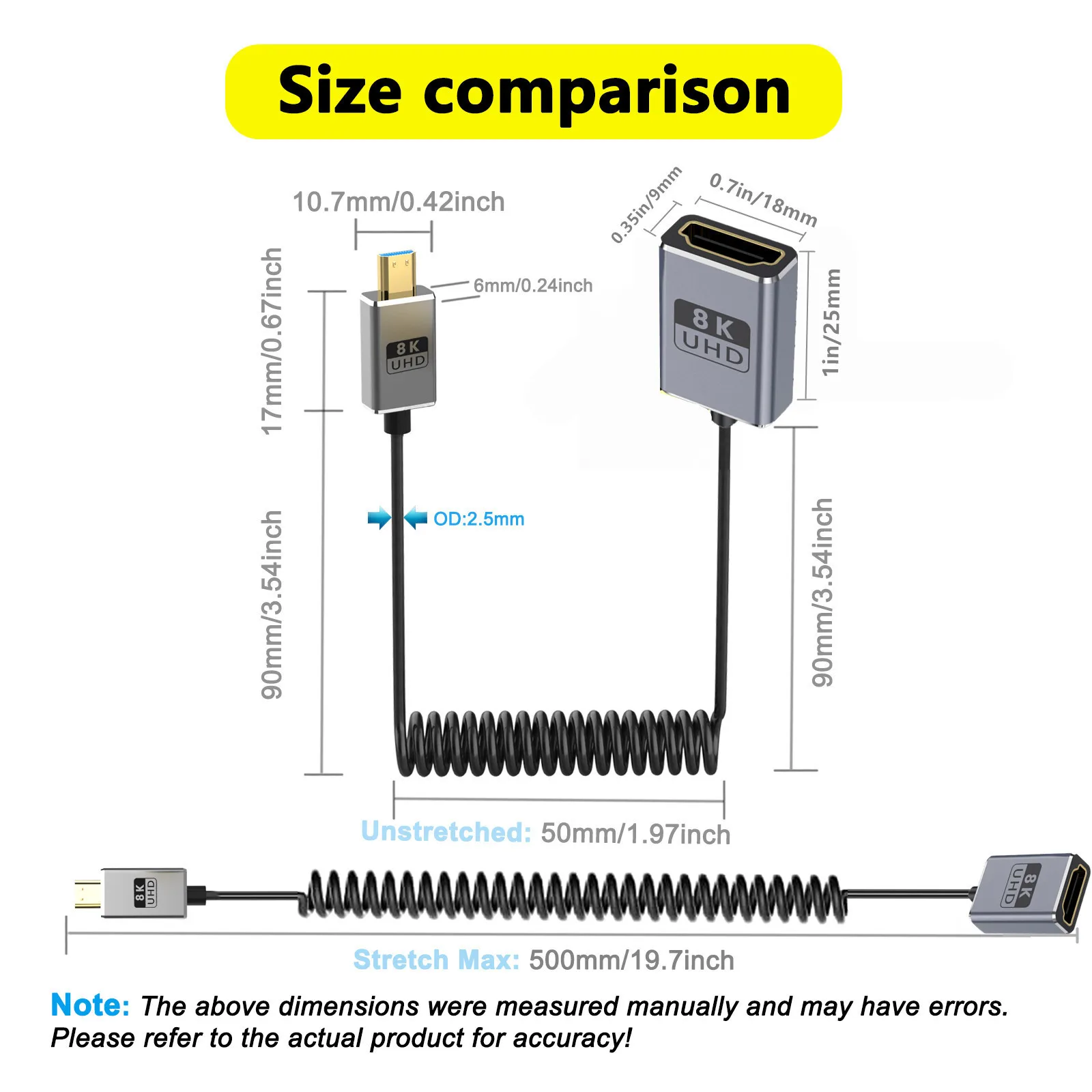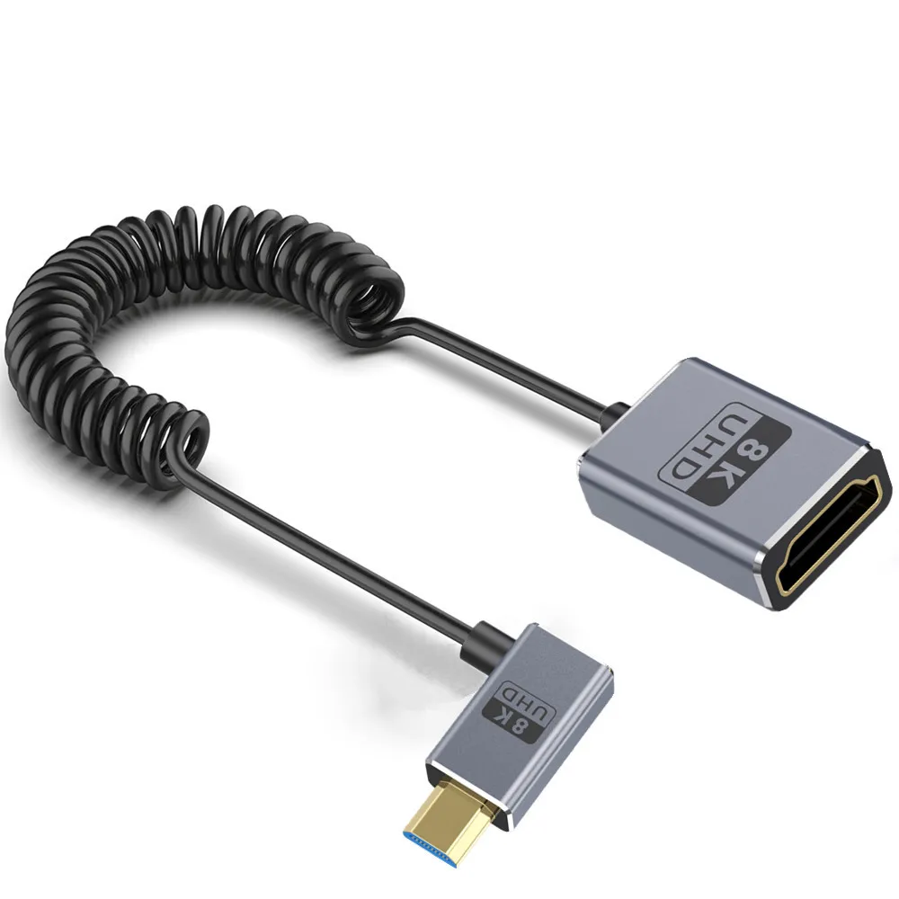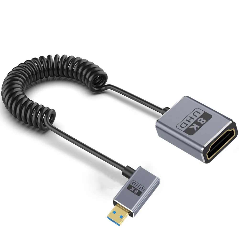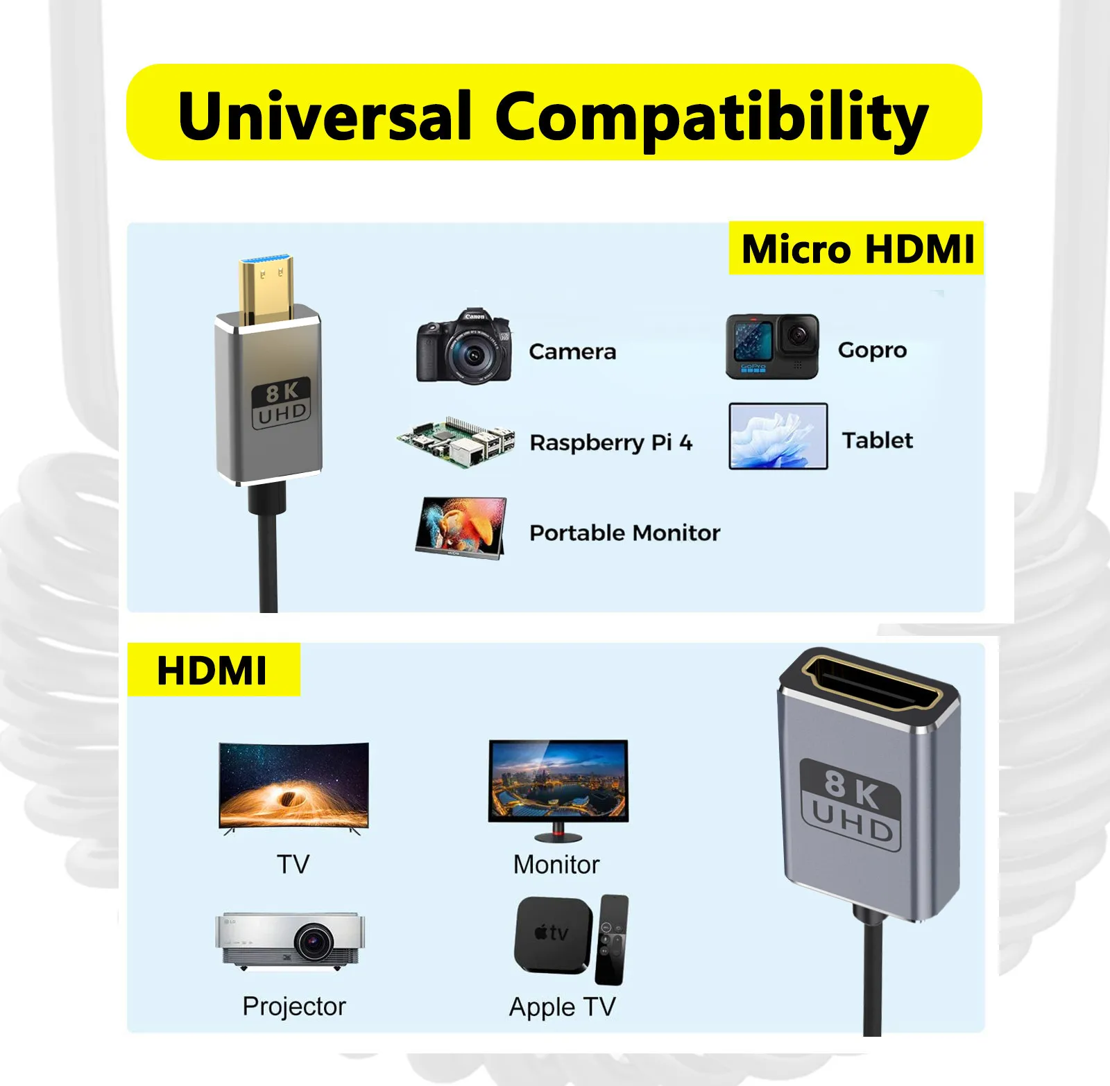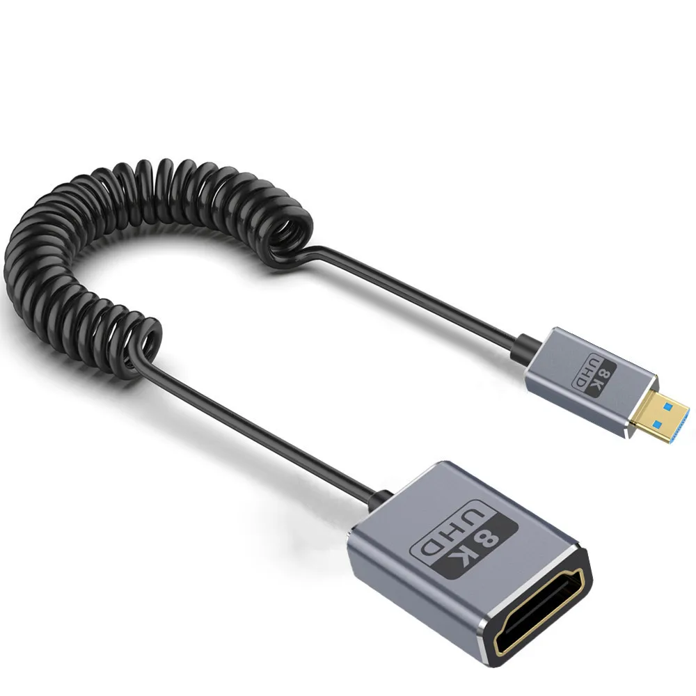 Cable fino de grado coaxial de resorte OD2.5mm, versión 2.1 Micro HDMI a HDMI