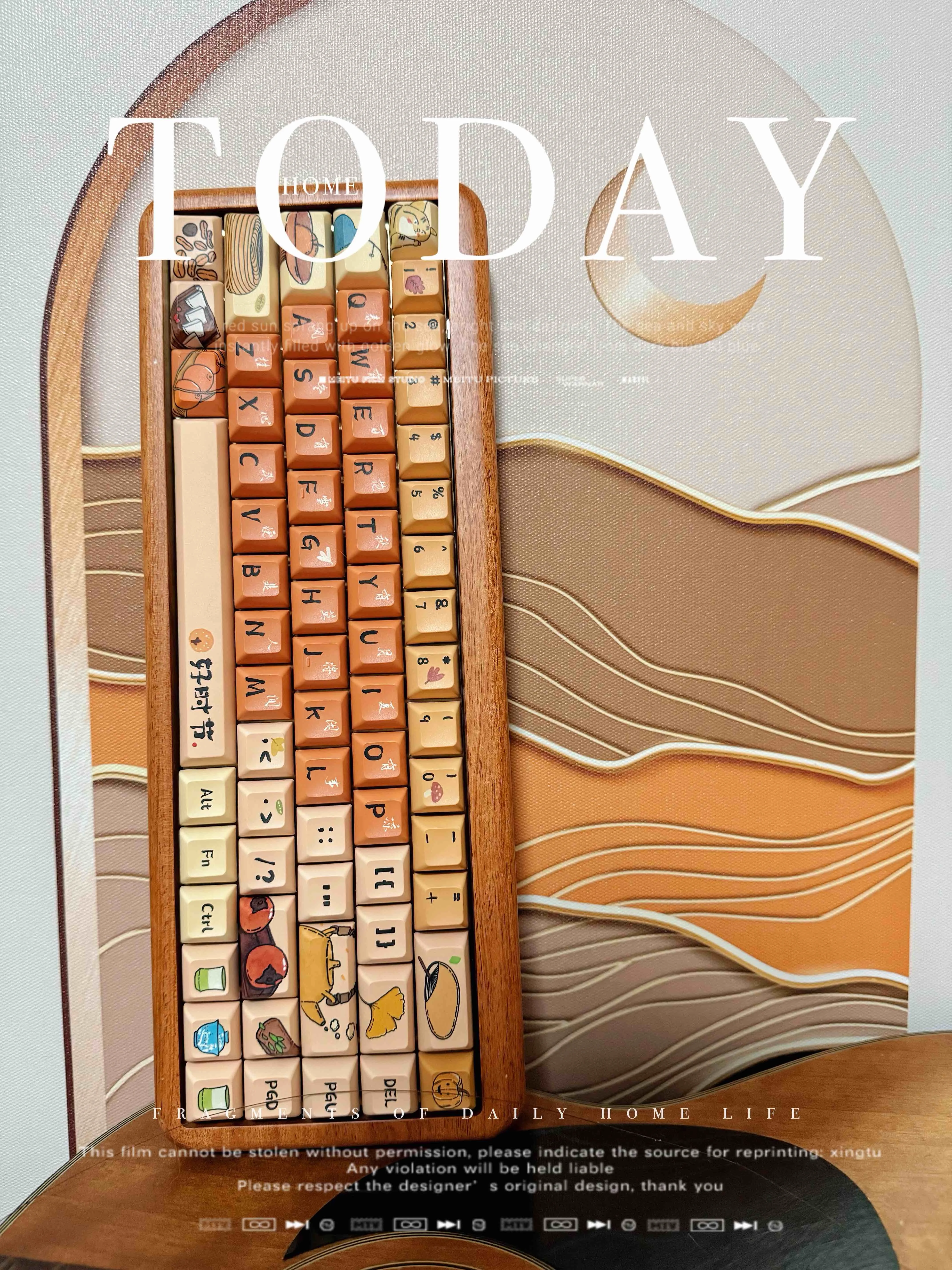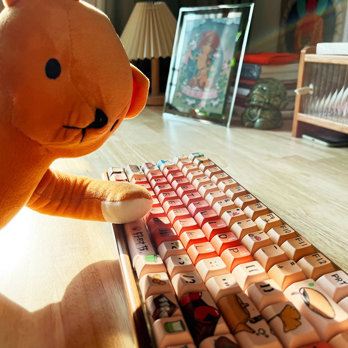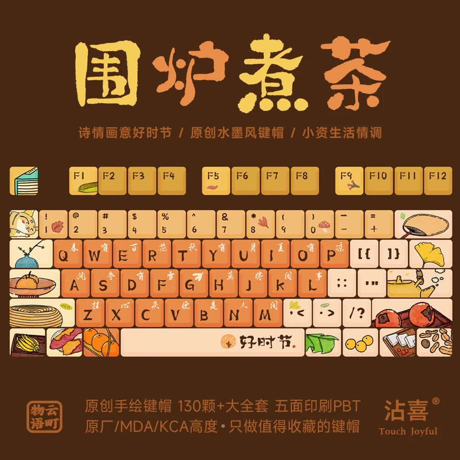 Cook Tea Around Stove Keycaps Custom PBT Cherry MOA KCA Profile Keycap Cute Original Design Point Key Cap for Gaming Keyboard