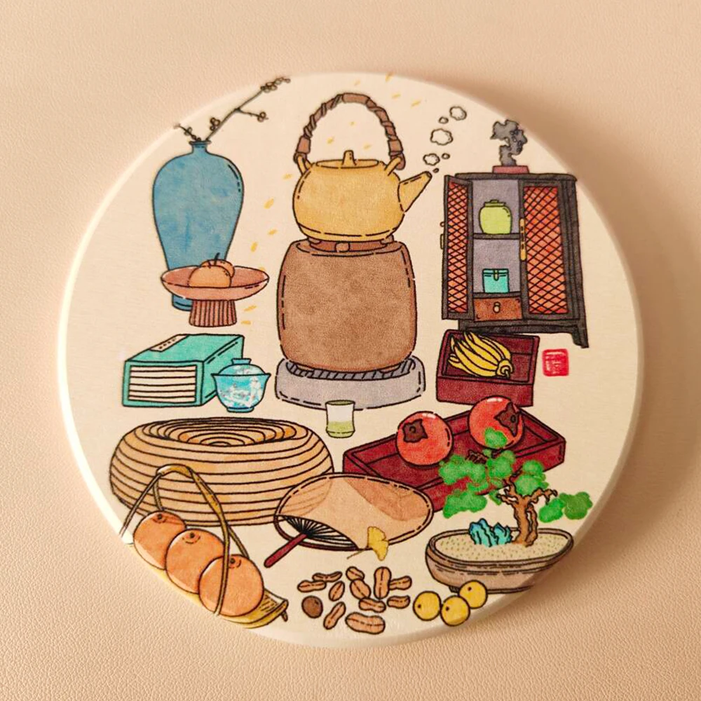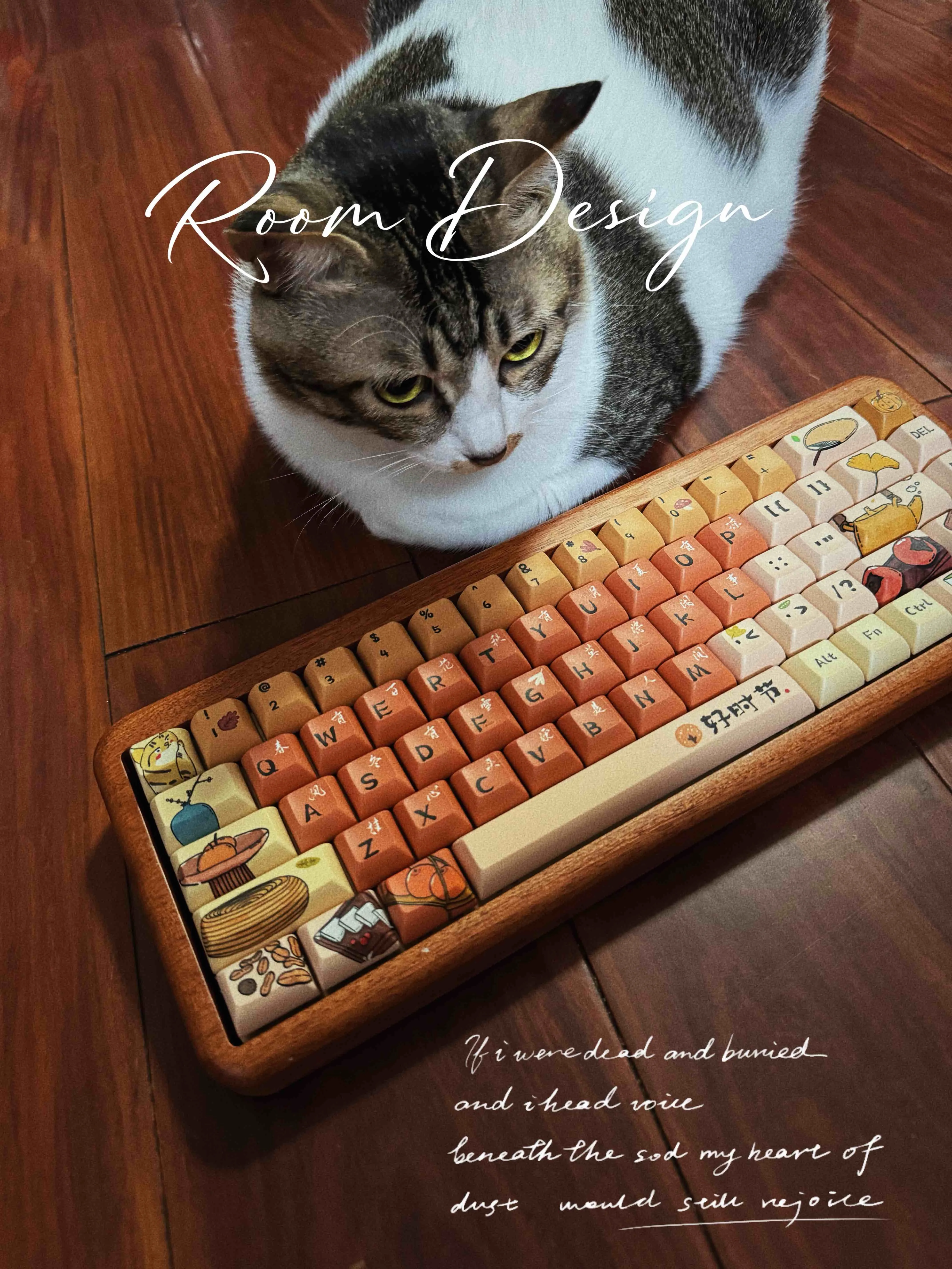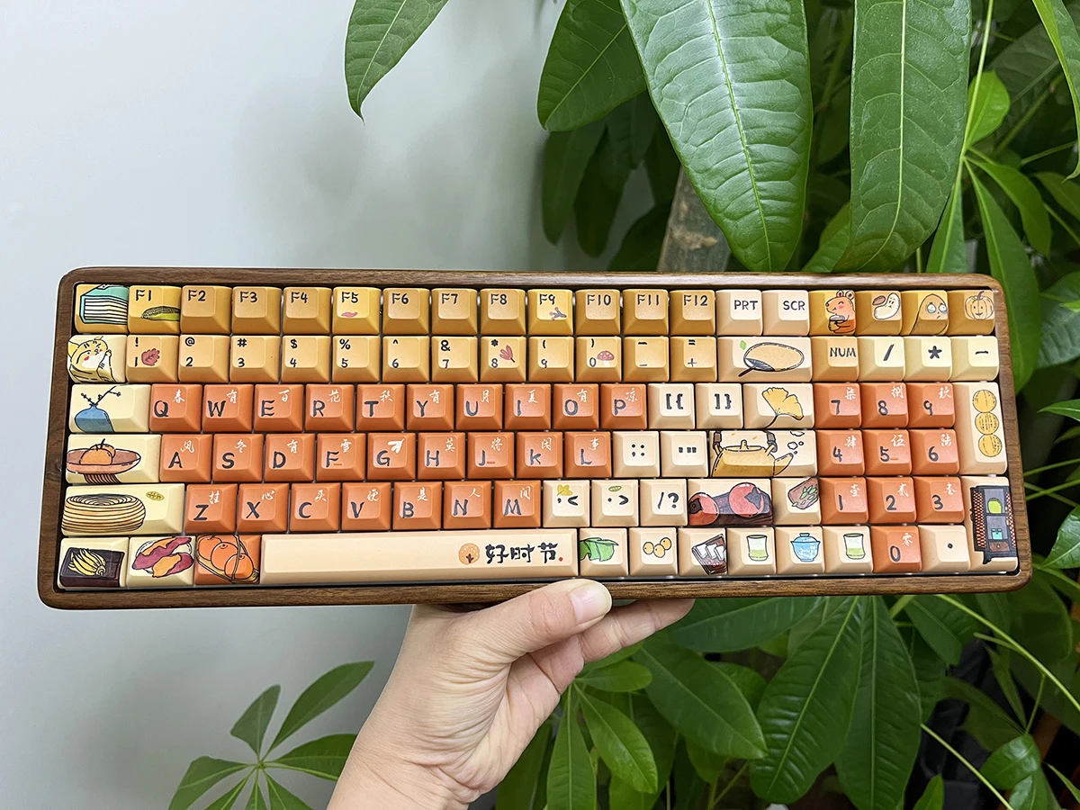 Cook Tea Around Stove Keycaps Custom PBT Cherry MOA KCA Profile Keycap Cute Original Design Point Key Cap for Gaming Keyboard