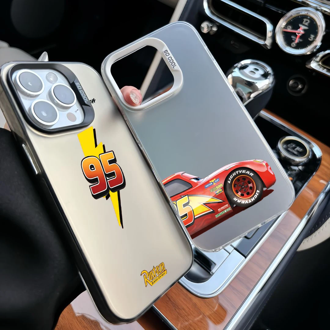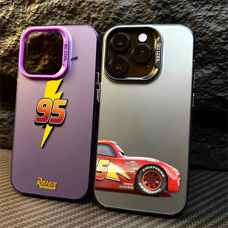 Comprar Coches Lightning McQueen para Apple iPhone 15 14 13 12 11 X XS XR 8 7 Plus Pro Max funda de teléfono plateada de color mate