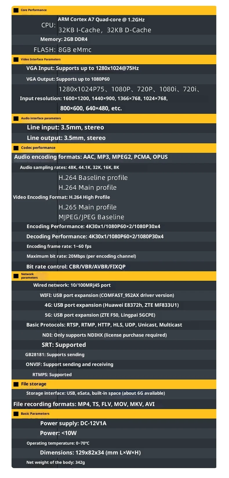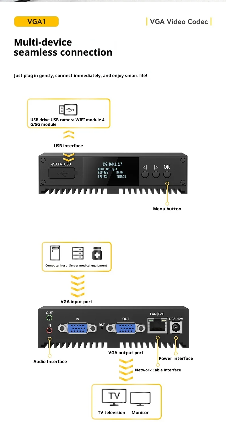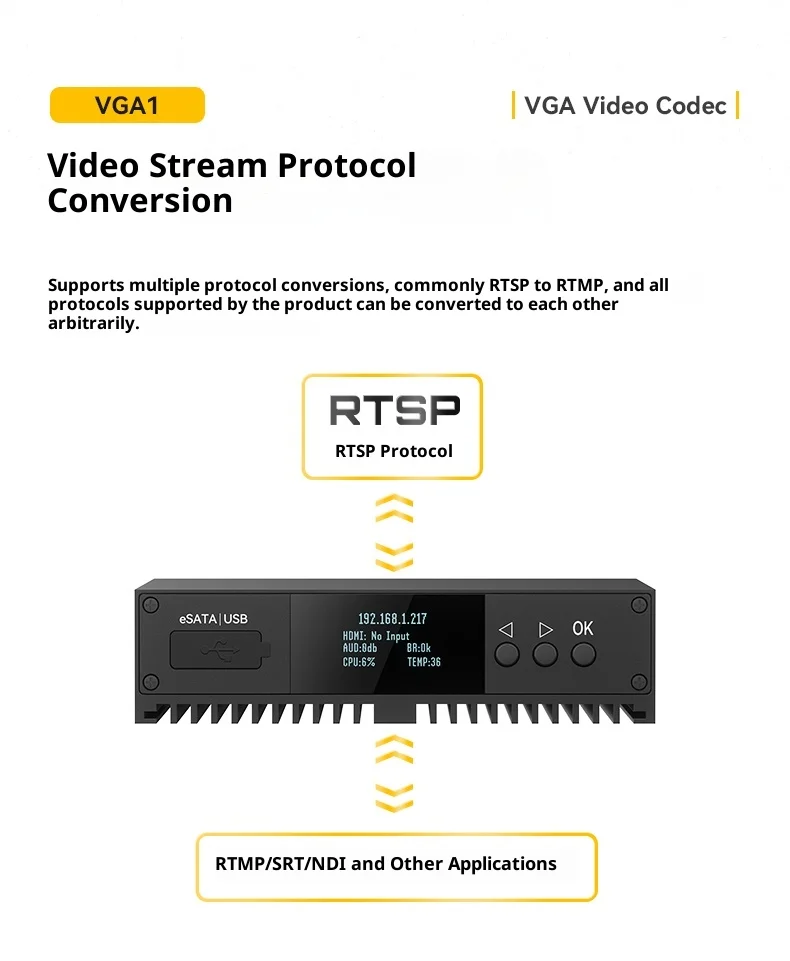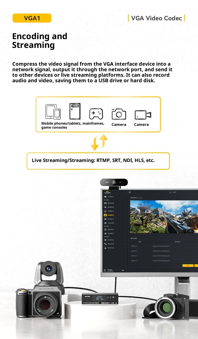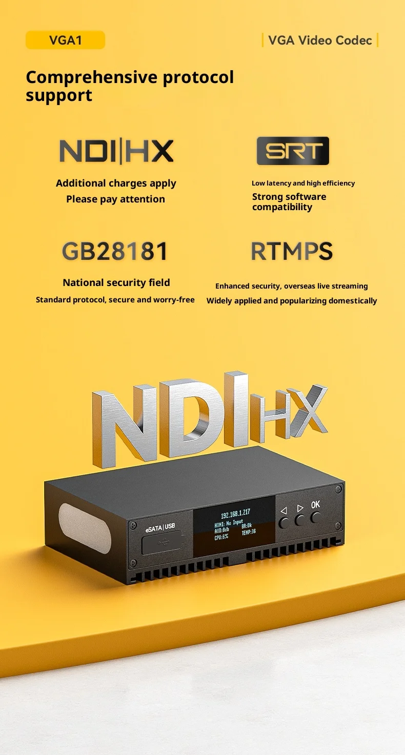 Codificador de captura VGA: Codificador de vídeo HD H.265 con soporte NDI para transmisión en vivo