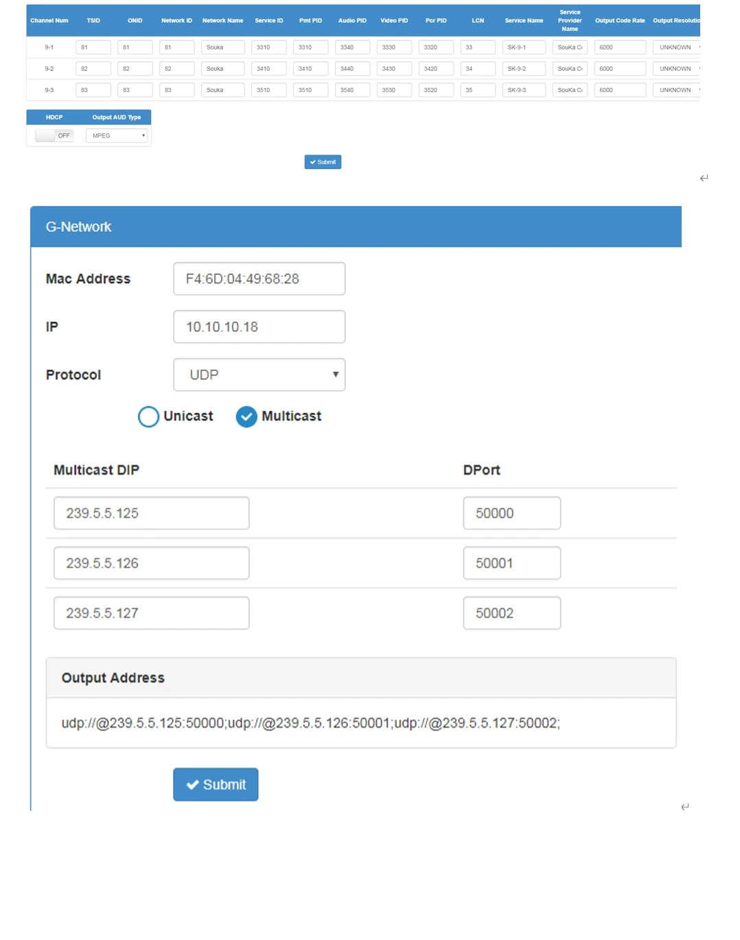 El SKD3010 es un módulo que puede tomar 3 señales HDMI hasta 1080P 60 y transficar las señales a su sistema IPTV en forma SPTS.El módulo está programado por nuestra interfaz de usuario web con pasos fáciles y sencillos.