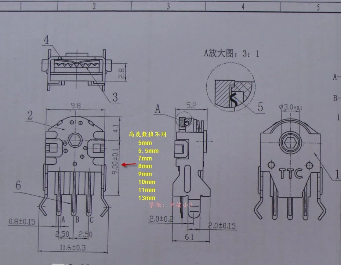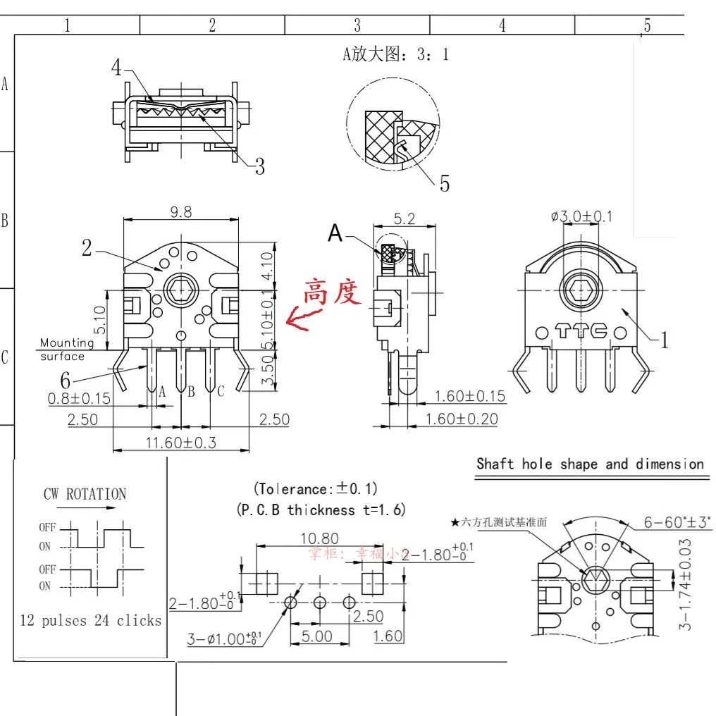 Codificador de ratón T TC Altura 5mm Núcleo verde