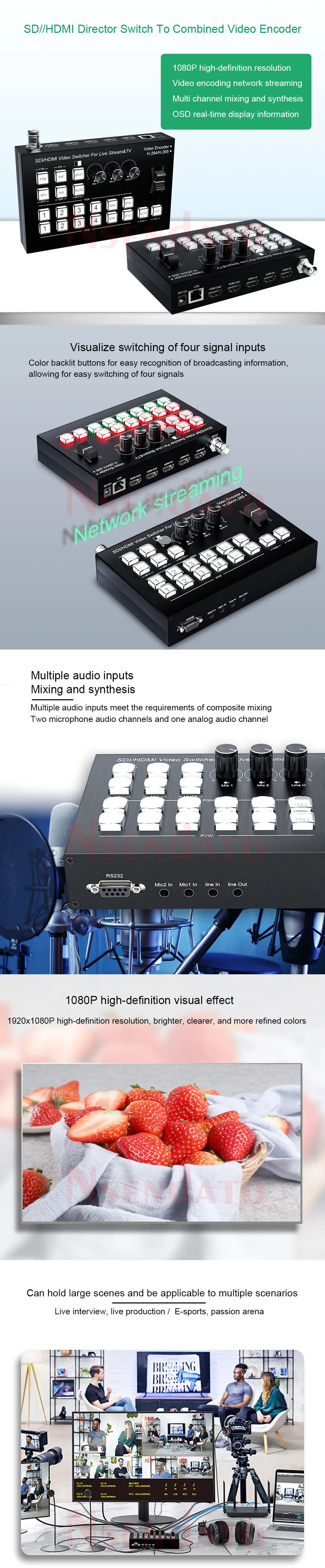 Codificador de vídeo HDMI H.265 SDI, mezclador, conmutador para TV, transmisión en vivo, HDMI de 4 canales, codificador sin costuras, interruptor de director con PIP