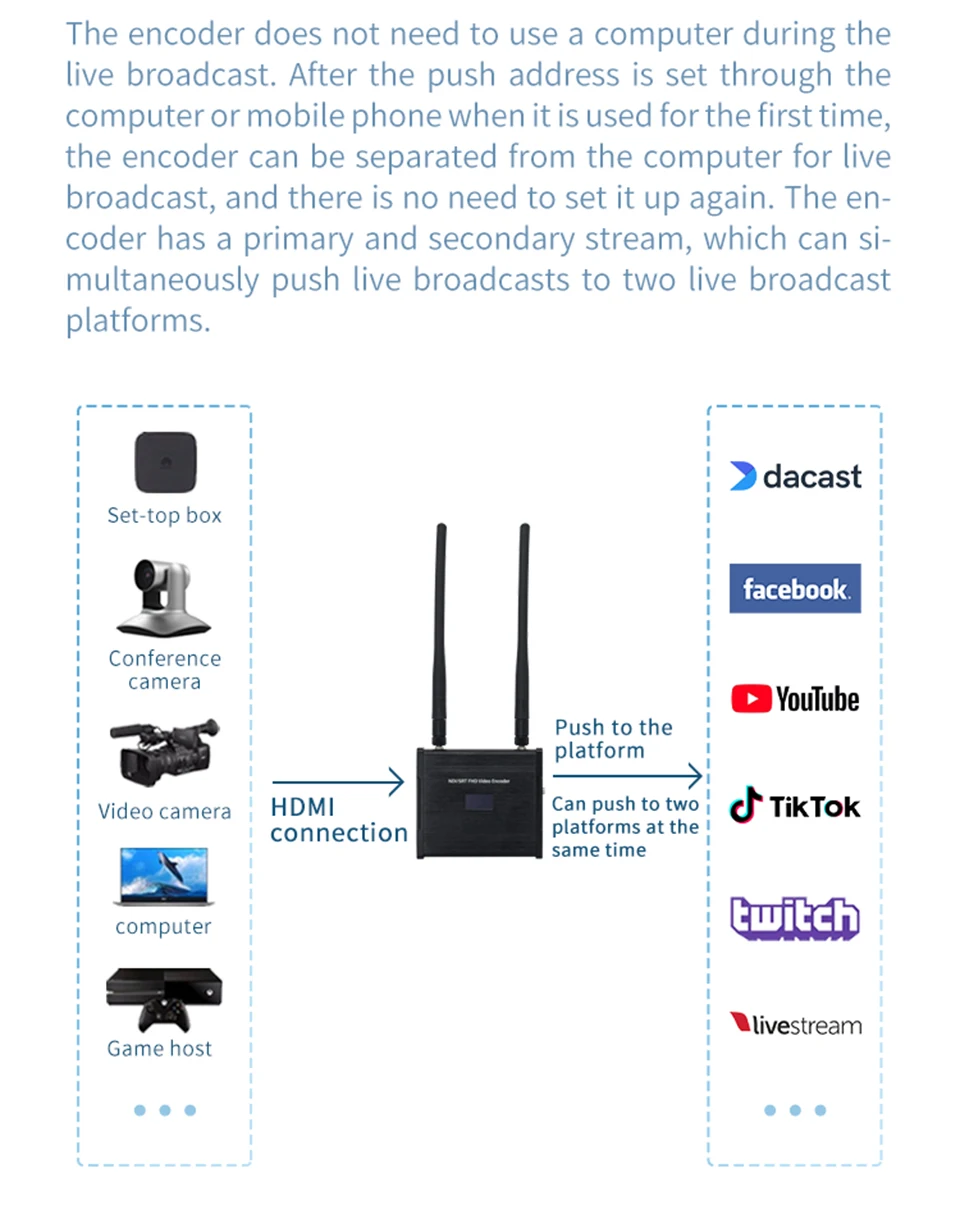 Comprar Codificador de vídeo HDMI NDI HX SRT Ip Rtmps transmisión en vivo H.265 264 IPTV Youtube Facebook Wowza Onvif Obs Vmix Wirecast