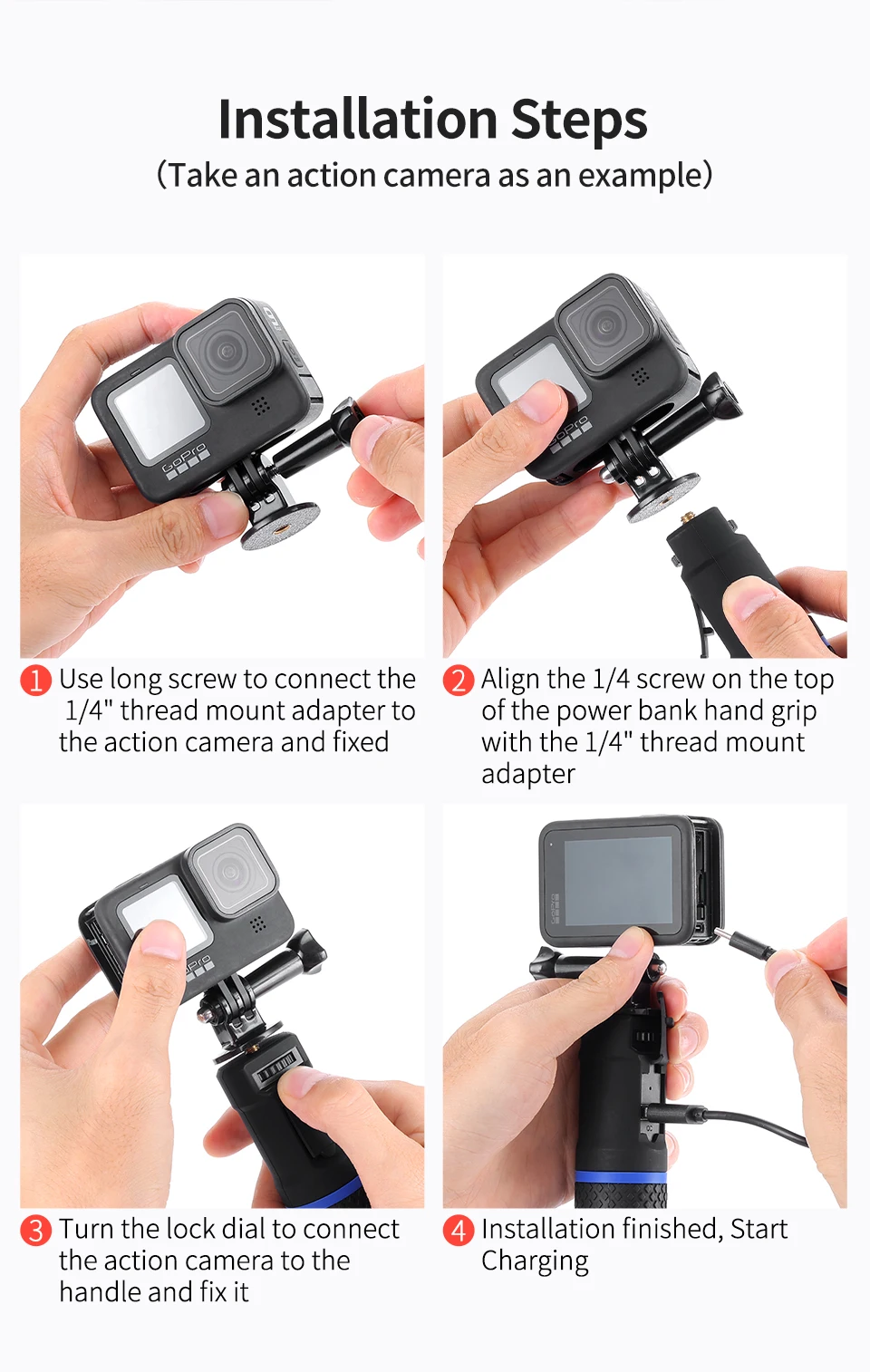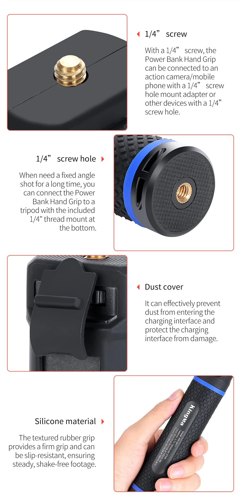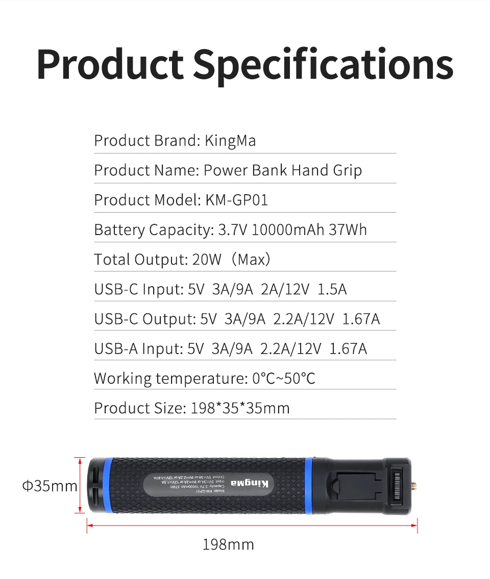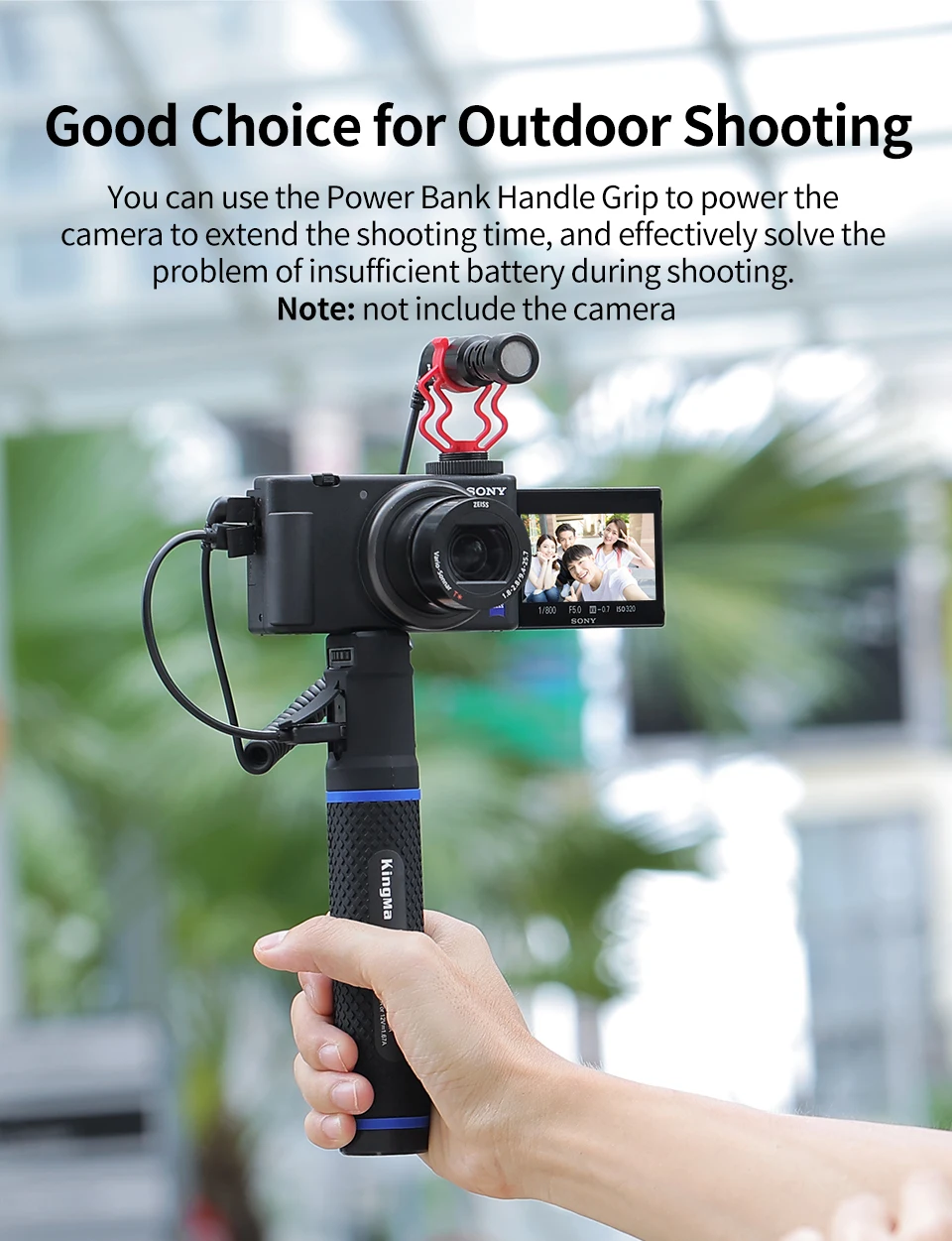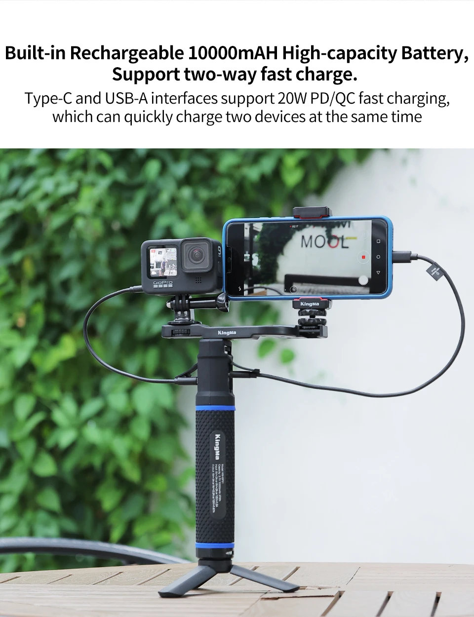 Built-in Rechargeable 10000mAH High-capacity Battery.You can use the Power Bank Handle Grip to power the camera to extend the shooting time, and effectively solve the problem of insufficient battery during shooting