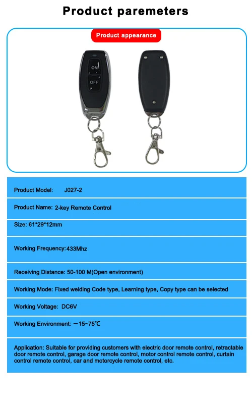 1.Duplique cómodamente las llaves de su puerta de garaje eléctrica con este control remoto inalámbrico de duplicación universal de 433 MHZ.