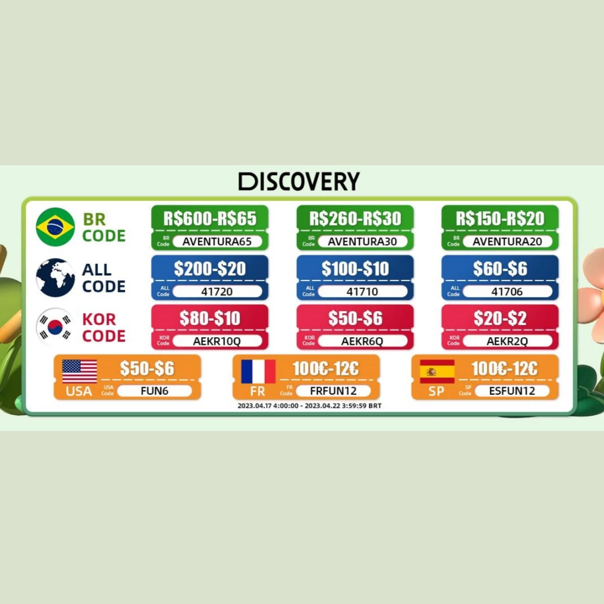 Tiempo de validez: 4-17-4-0. 2023 4:00:00 y 4-21-0. 2023 03:59:59 (BRT)