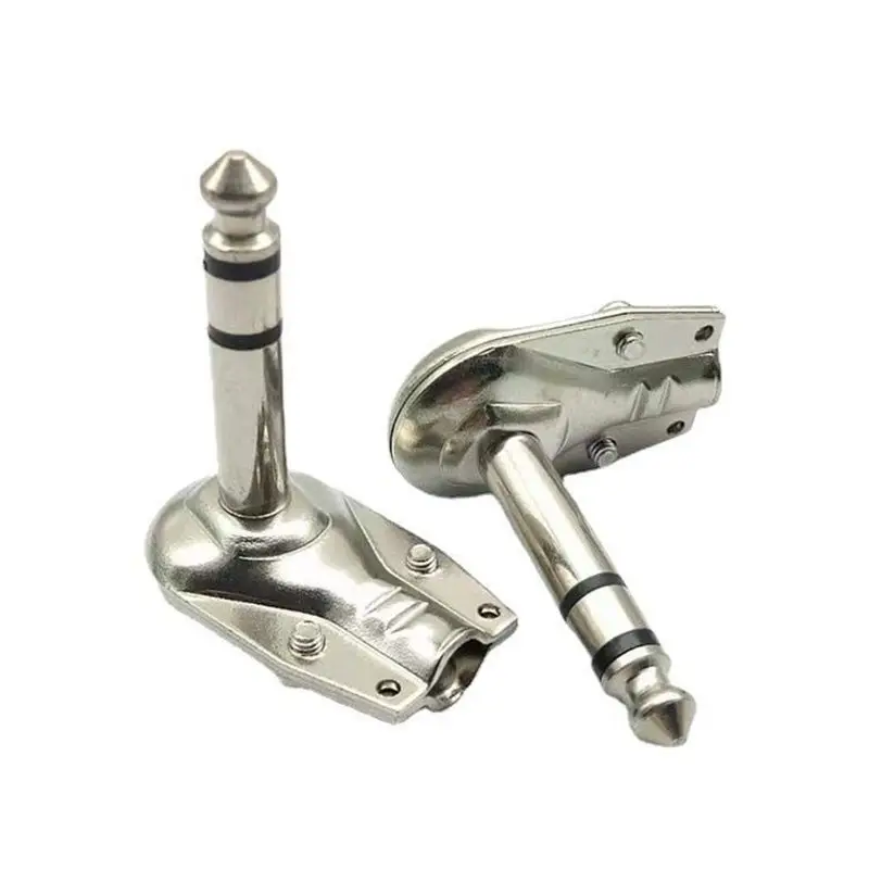 Codo de 90 grados 6,5 conector amplificador de micrófono de audio de dos núcleos grande conector de guitarra eléctrica de un solo canal curvado de 6,35 mm;