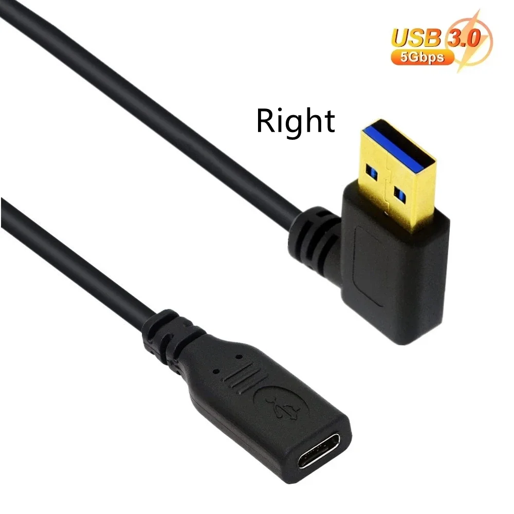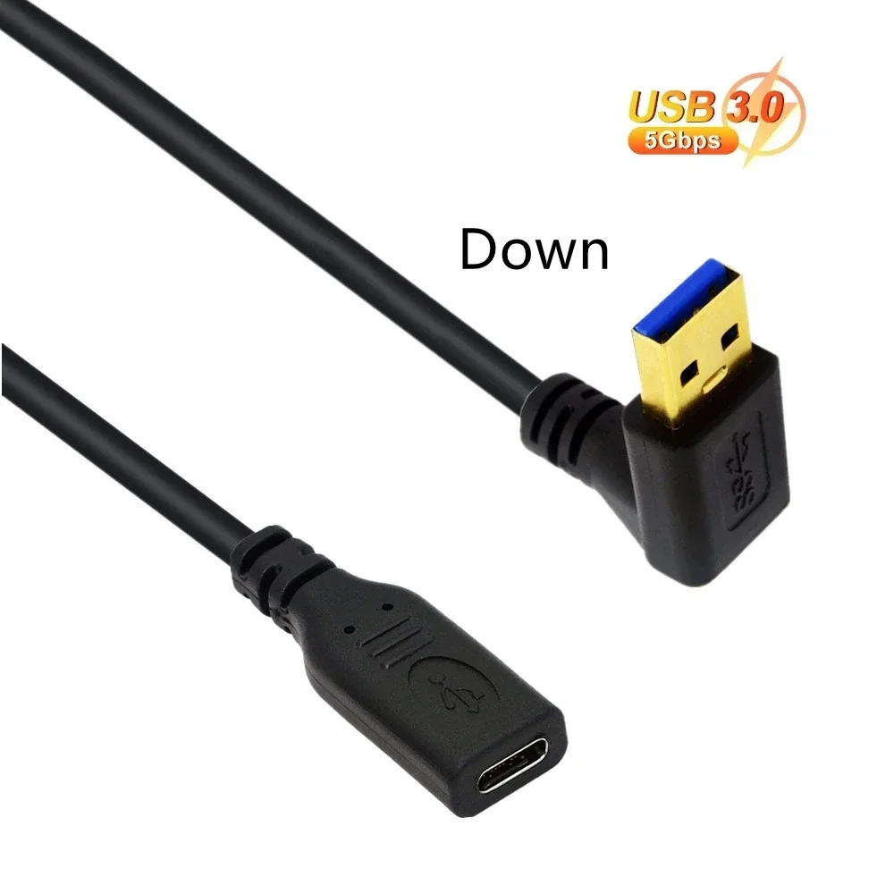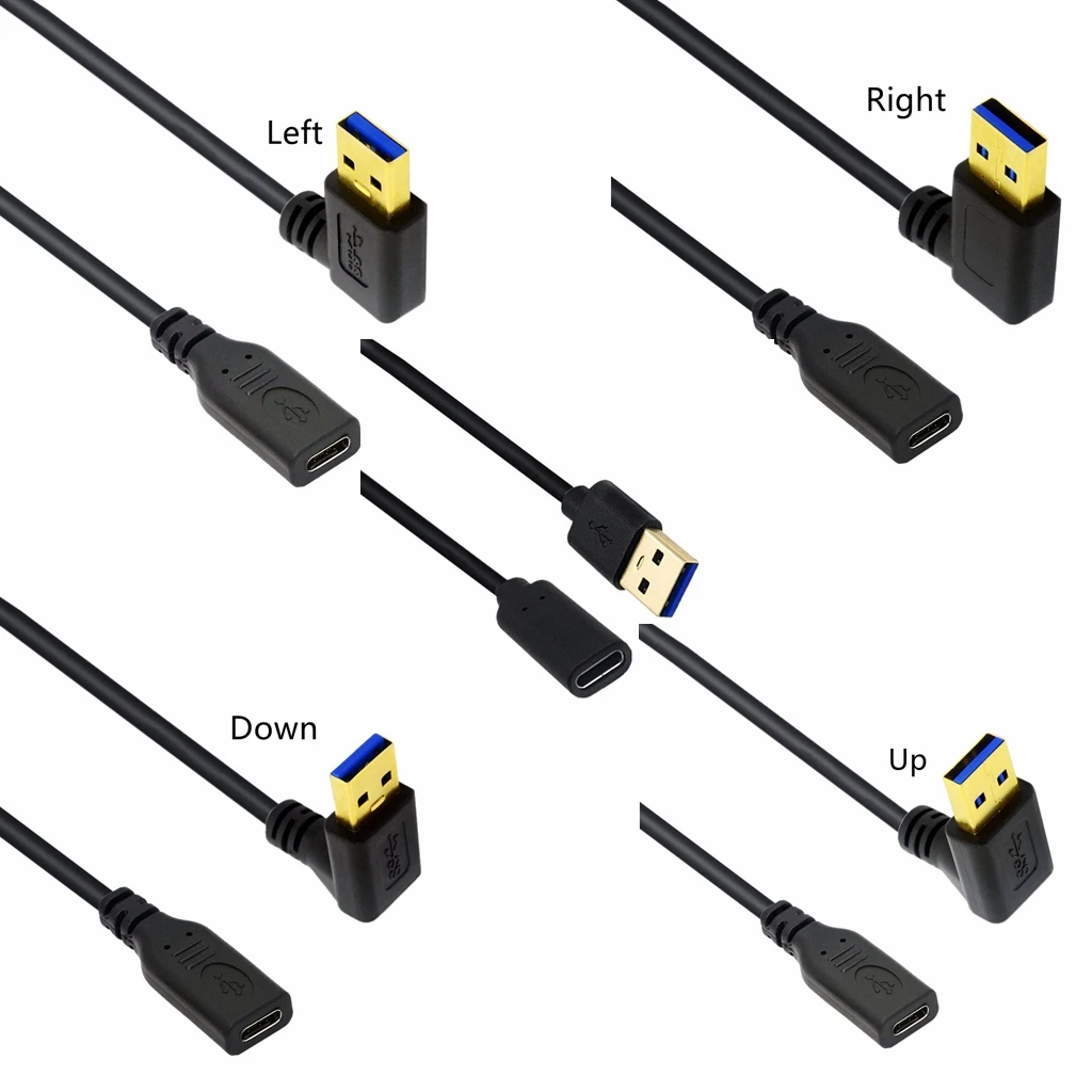 Cable adaptador convertidor de conector chapado en oro USB 3.0 tipo A macho a USB 3,0 tipo C hembra con ángulo de 90 grados;