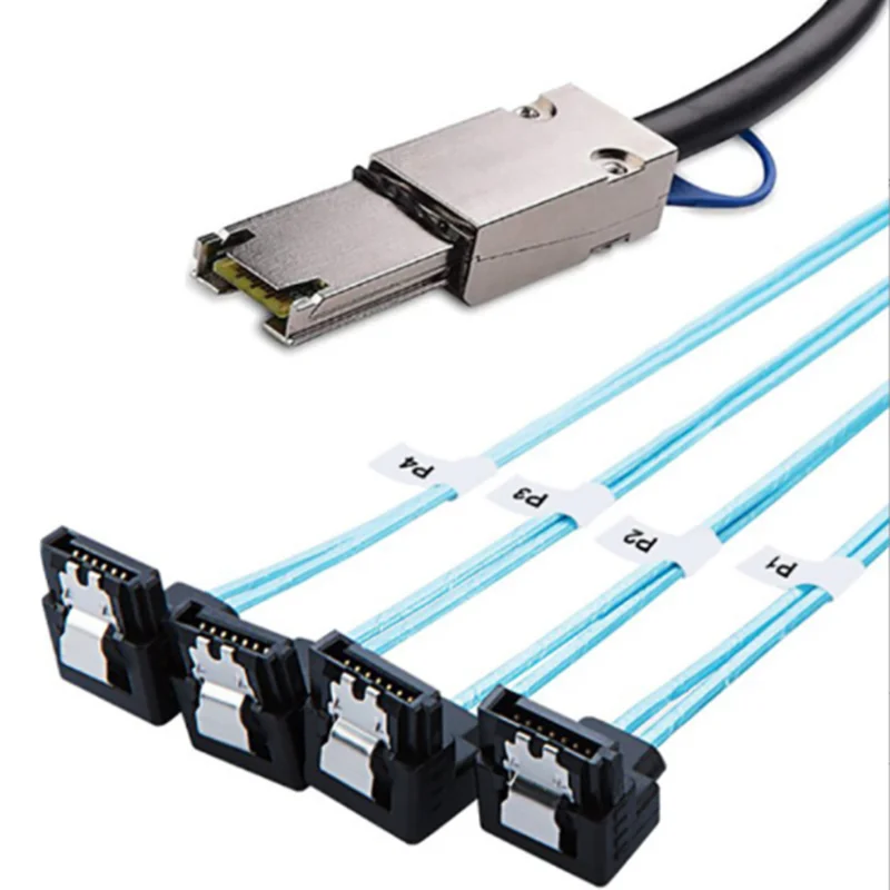 Comprar Codo arriba y abajo SAS 3,0 Mini SAS 26 pines SFF-8088 macho a 4 SATA 7 pines hembra adaptador divisor de disco duro Cable de datos 0,5 m 1m 2m