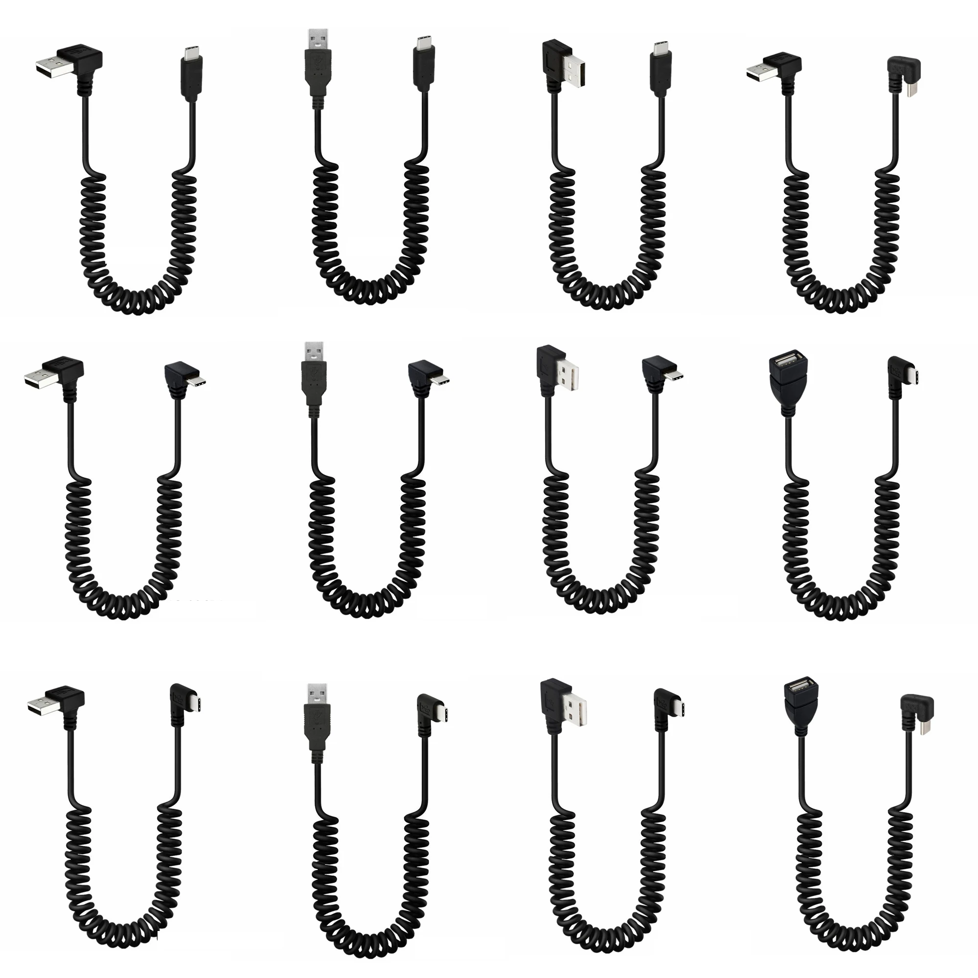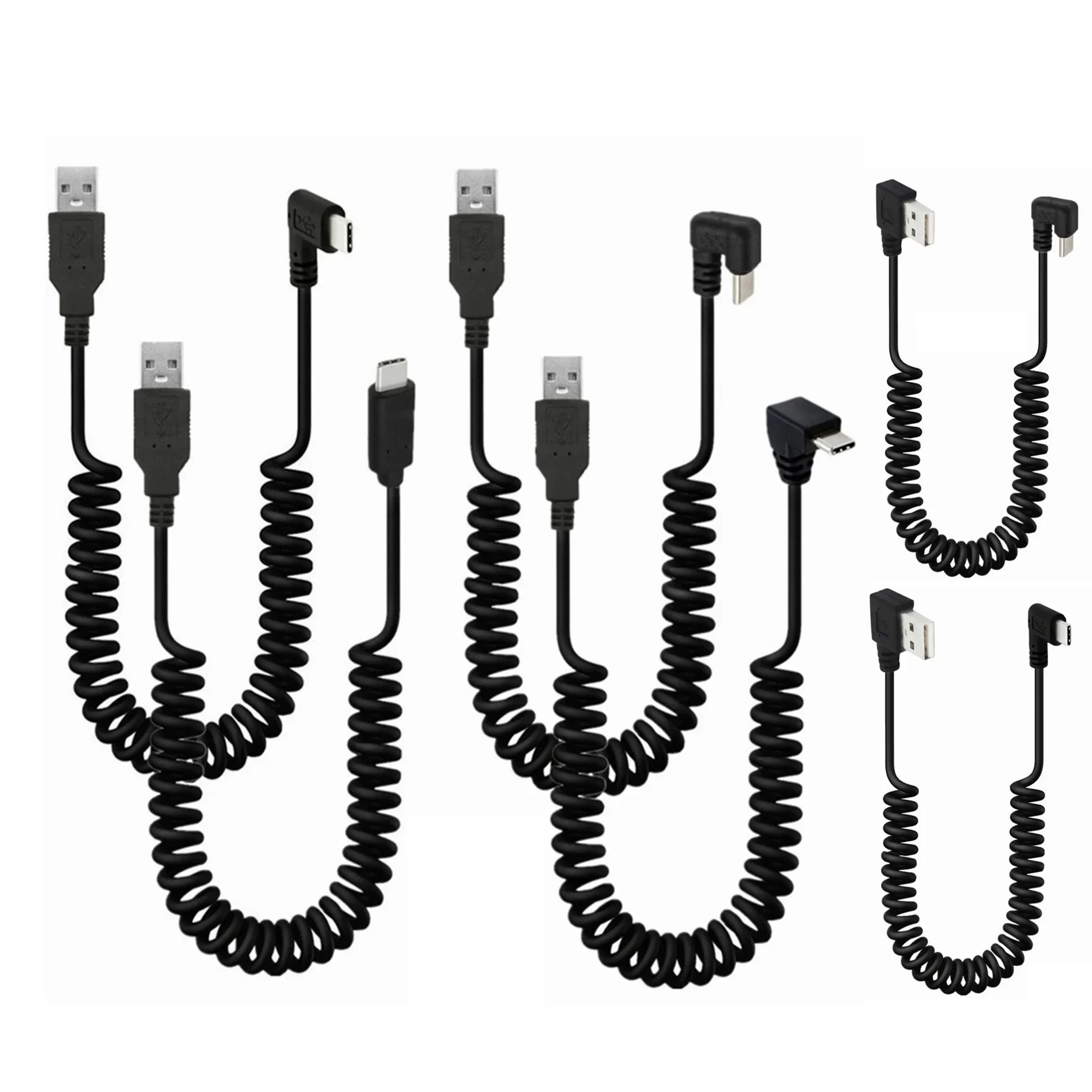 Cable de carga de datos de teléfono móvil con ángulo de flexión macho USB 3.1 tipo C acodado de ángulo de flexión de 2,0 AM, cable de datos de resorte telescópico montado en el automóvil de 1,5 M 5 pies;