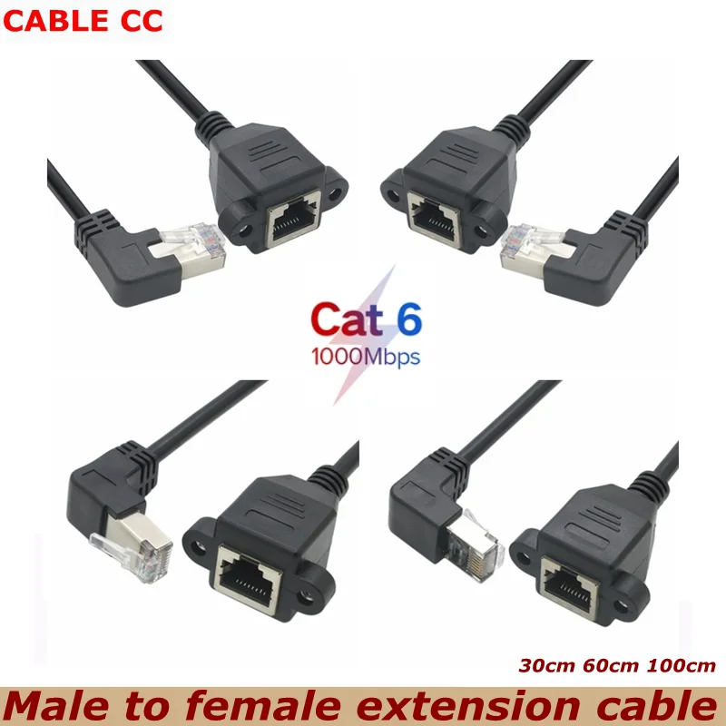 Comprar Codo Gigabit Ethernet de 0,3 m 90 ° Cable de red RJ45 Cable de extensión de orificio de tornillo macho a hembra para enrutador de computadora de banda ancha CAT6