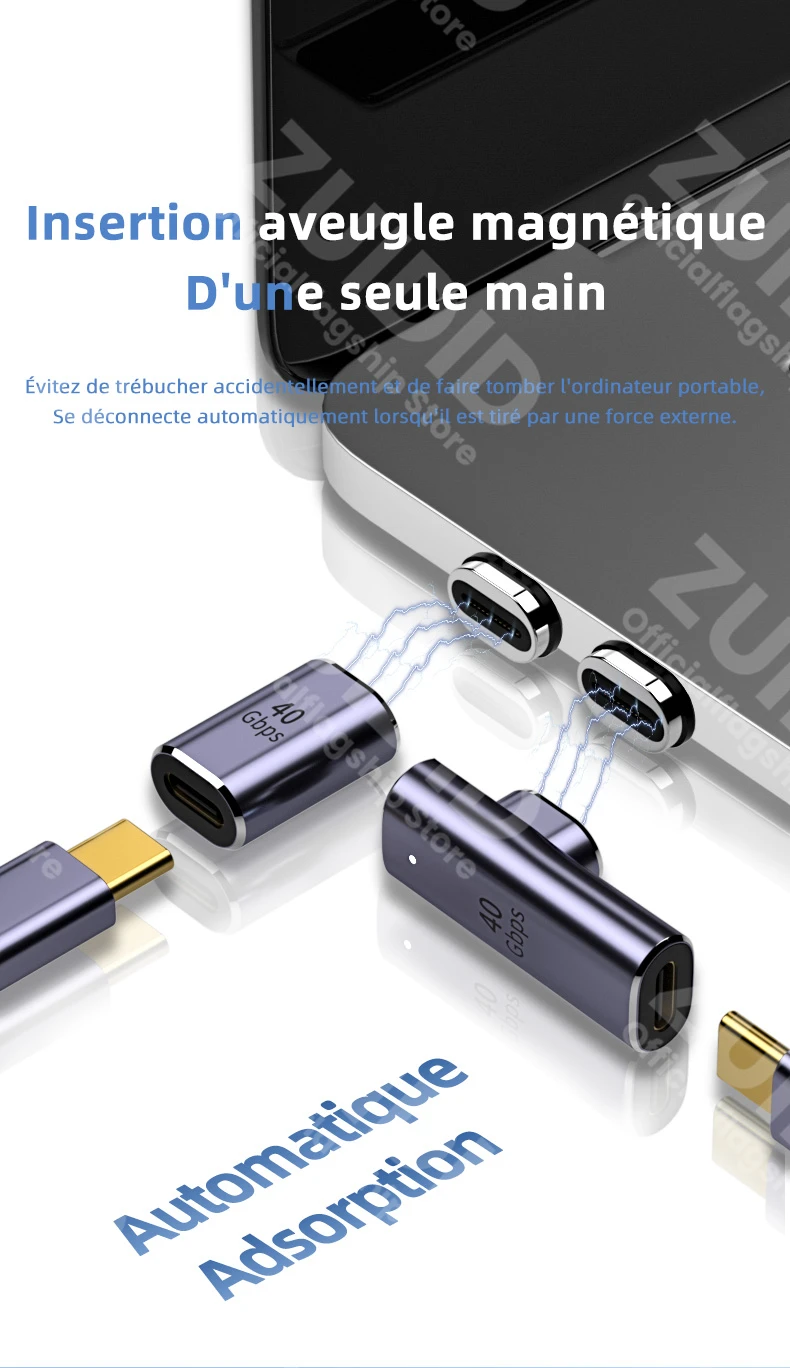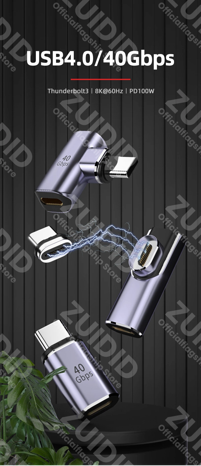 Adaptador magnético USB4.0 Thunderbolt3 USB C a tipo C 40Gbps 100W Cable convertidor magnético de carga rápida 8K @ 60Hz adaptador USB tipo C