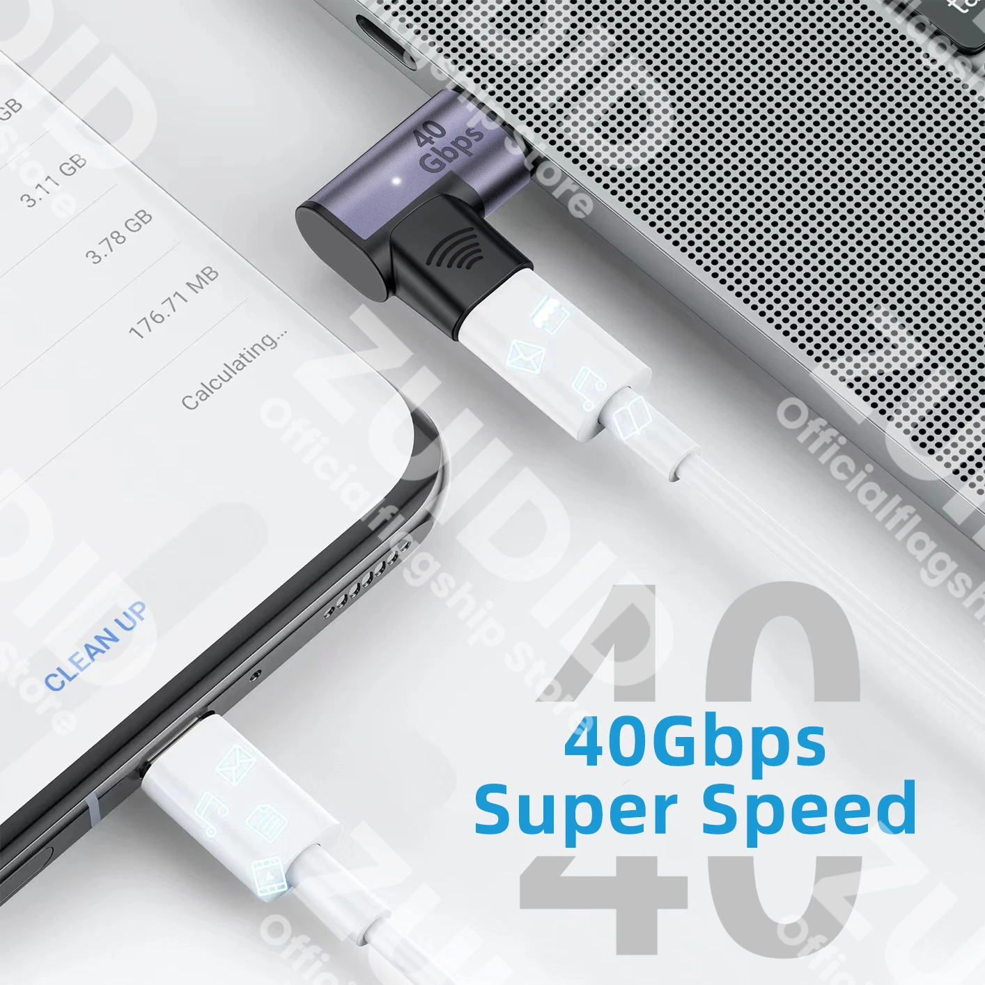 Nota: Es necesario usarlo con un cable de datos de 40Gbps para lograr una sincronización de datos máxima de 40Gbps.