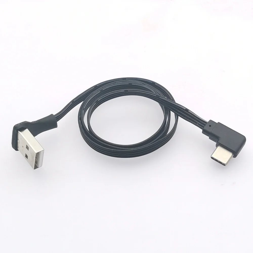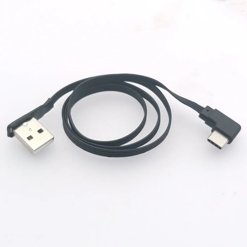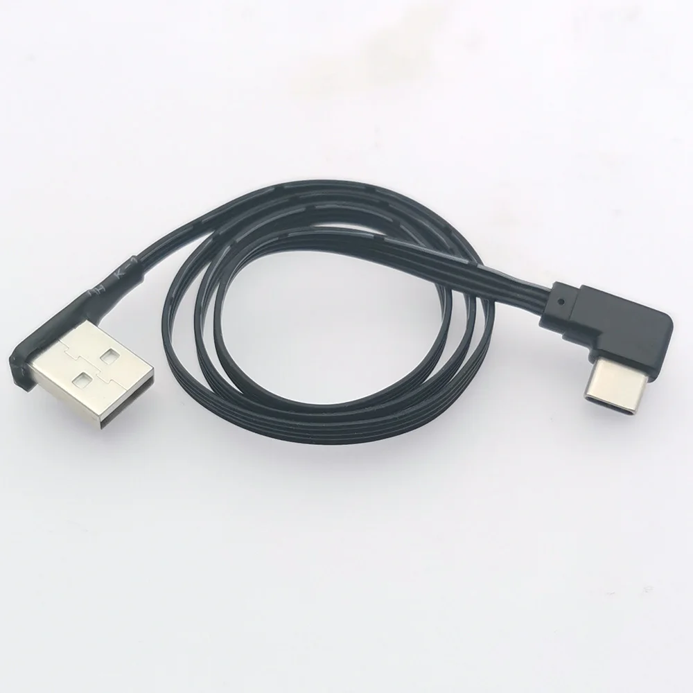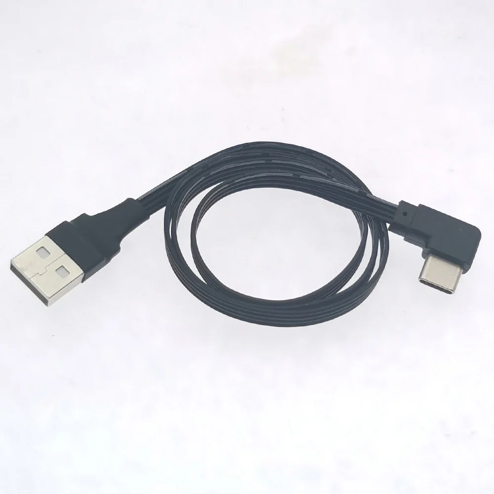 Codo USB plano de 50CM a conector de Cable de carga macho tipo C Cable suave de ángulo recto versión 2,0 USB2.0 a tipo C