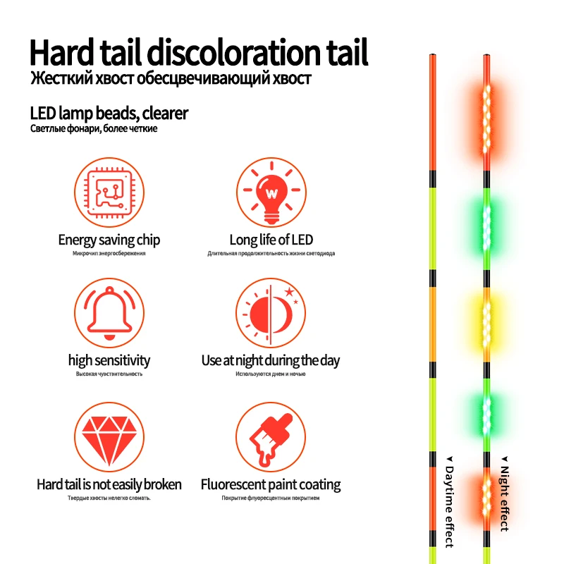 2. La cola es un sensor de gravedad, que puede cambiar de color de verde a rojo cuando el anzuelo morde el pez.