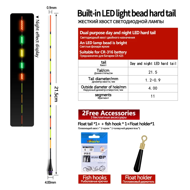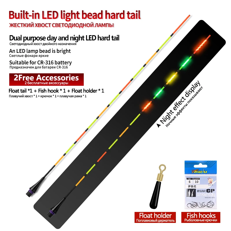 1 pieza de cola de flotador LED + 1 tubo de flotador + 1 gancho para bolsa + 1 cola de descanso de flotador, boya de luz LED brillante, accesorios de aparejos luminosos de alta calidad