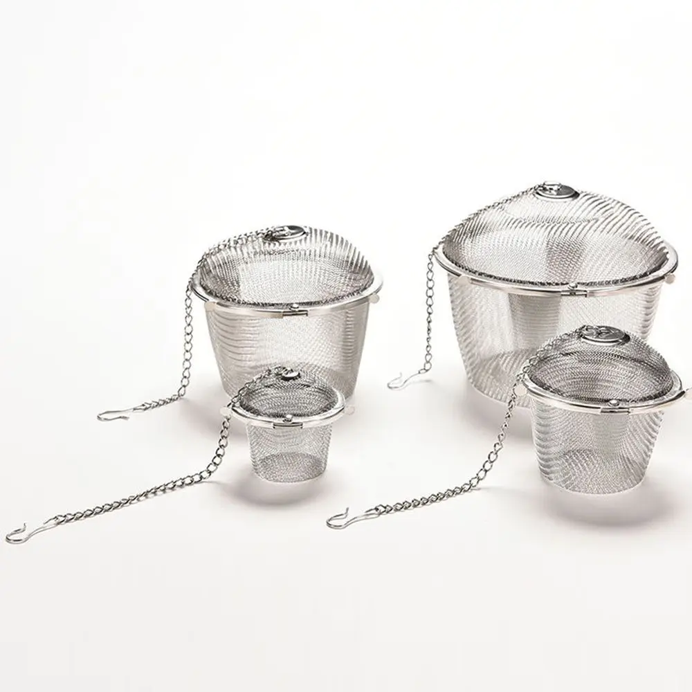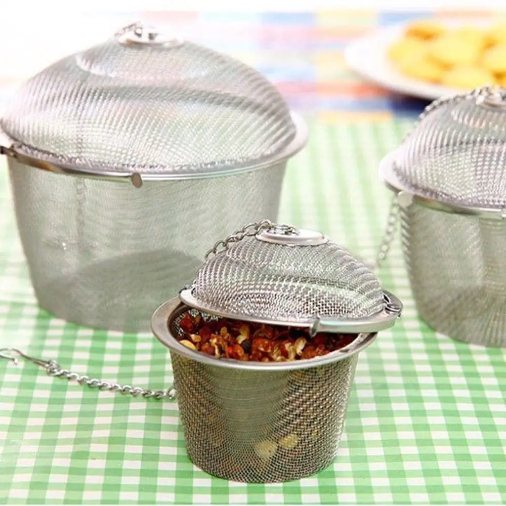 Comprar Colador de especias de té de bola de hierbas de malla inoxidable reutilizable, tetera de plata duradera, filtro de té de bloqueo, Infusor de especias