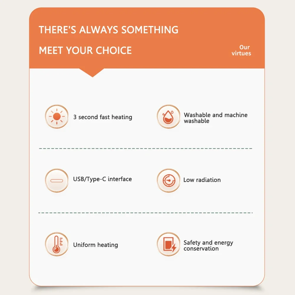 Característica:1. Almohadilla térmica para dormir:La fuente de alimentación externa tipo C/USB se puede utilizar para calefacción. La temperatura alta/media/baja se puede ajustar para aumentar rápidamente la temperatura.
