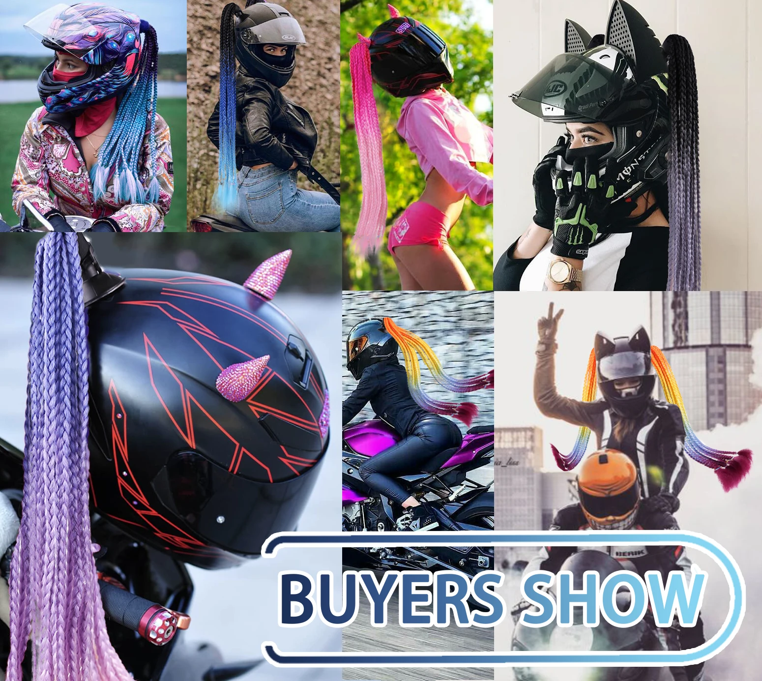 Coletas trenzadas para casco de 24 pulgadas, cola de caballo para mujer, casco de motocicleta, cola de caballo trenzada, coletas de moto, trenzas, cola de caballo con ventosa