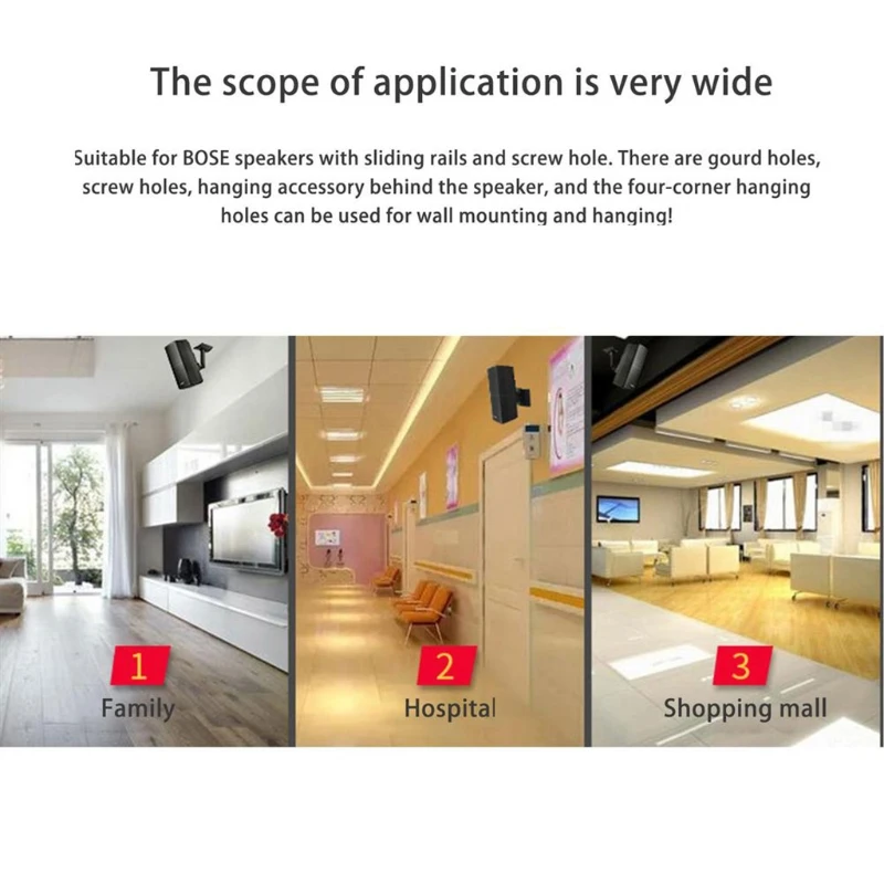 Adecuado para altavoces con rieles deslizantes y orificio para tornillos, ¡los orificios para colgar de cuatro esquinas se pueden utilizar para montar y colgar en la pared!