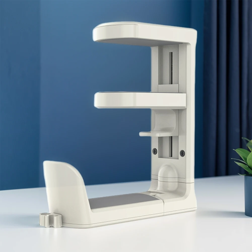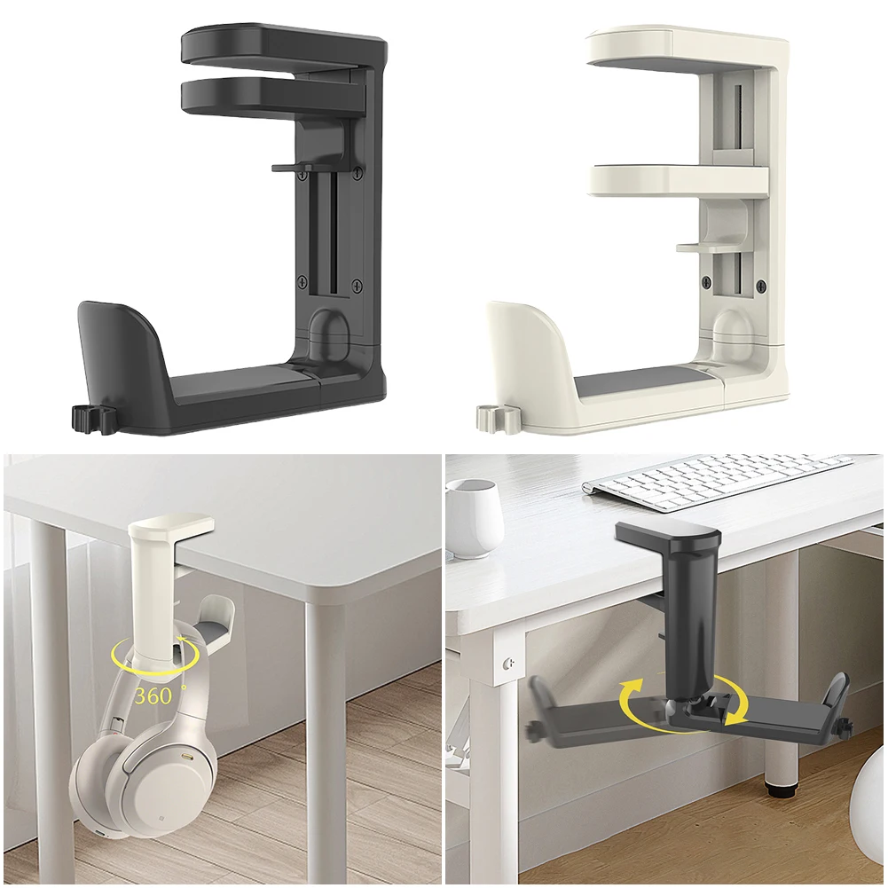 2. Rotación de 360 grados:Con su función de rotación de 360 grados, el gancho de escritorio para auriculares le permite ajustar el ángulo y la dirección de sus auriculares para adaptarse a diferentes ángulos de uso y preferencias.